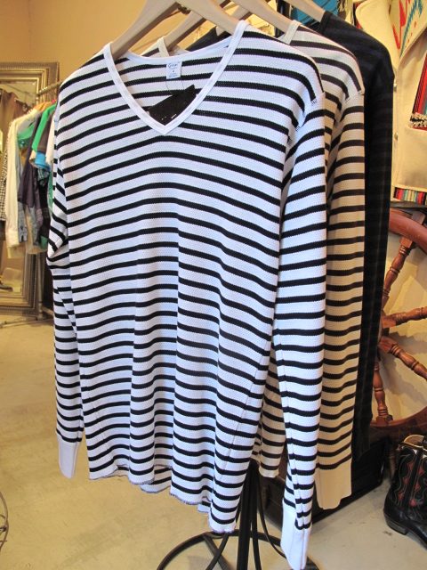 前回紹介した7分袖ボートネックとは別に、長袖のVネックのワッフルTもあります。