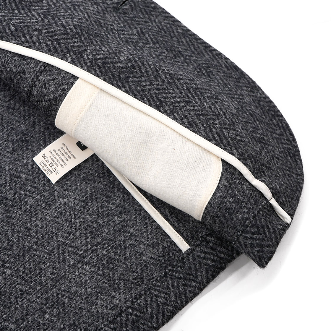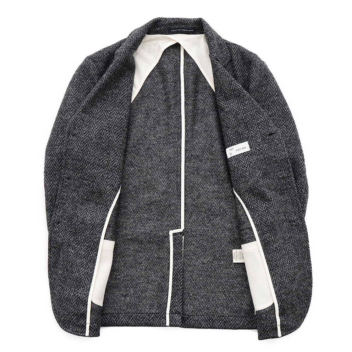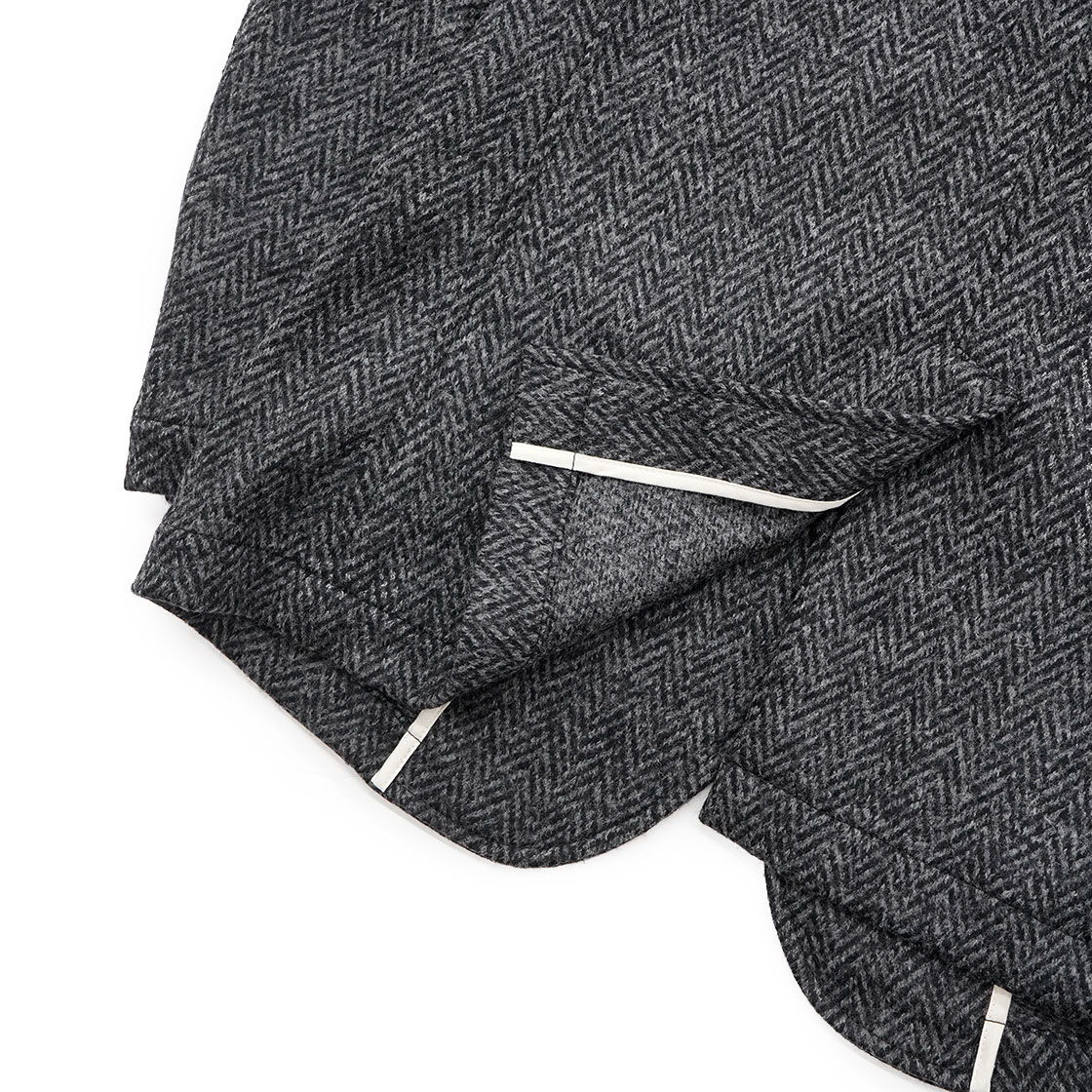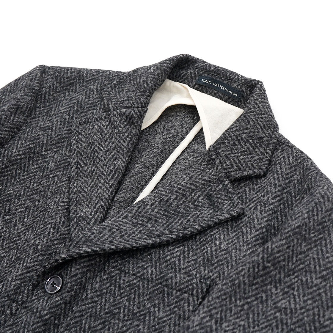 生地はピュアバージンウールを100%用いたヘリンボーン柄。