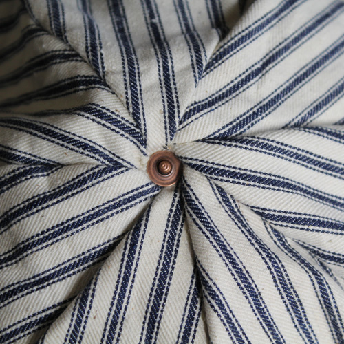 またリベット周辺の布の合わせ目も、渦を巻くように合わさってるのが分かります。なんでこうなったのか、作る人のみぞ知るところ。