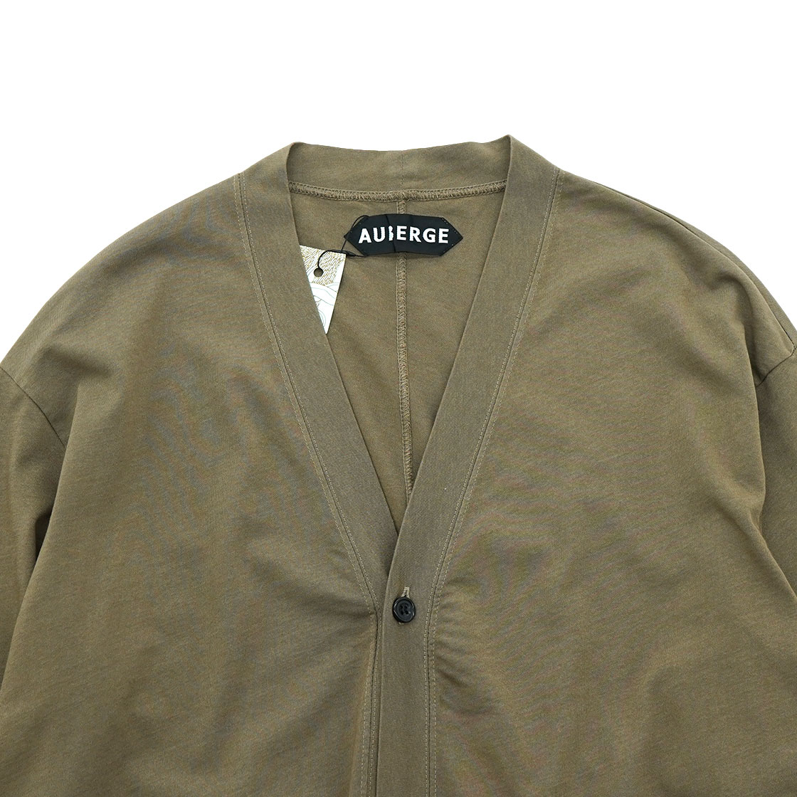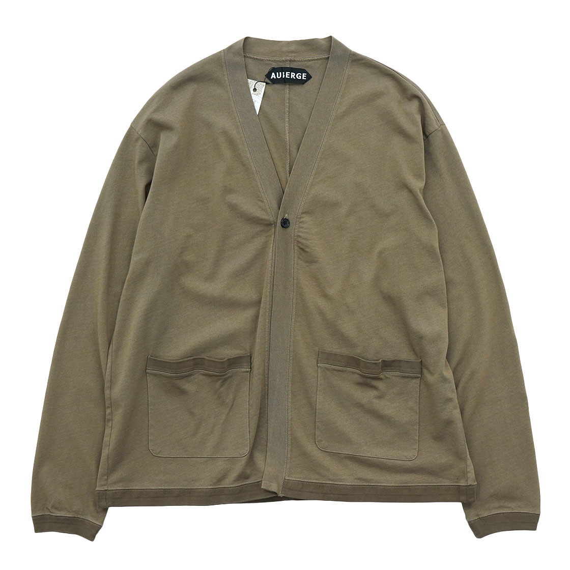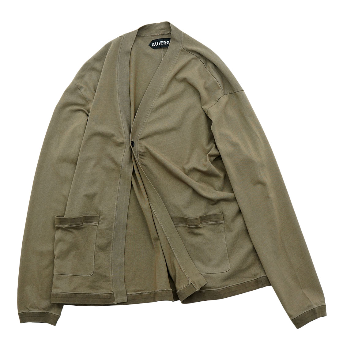 1つボタンのカーディガンにはハッとさせられるはず。というのも、春夏のカーディガンはボタンをしっかり留めるよりも、羽織っただけか留めてもボタン1つだけという着方の方が多い。それを逆手にとって、潔く1つボタンにしてしまったのがAUBERGEのFRANCO。