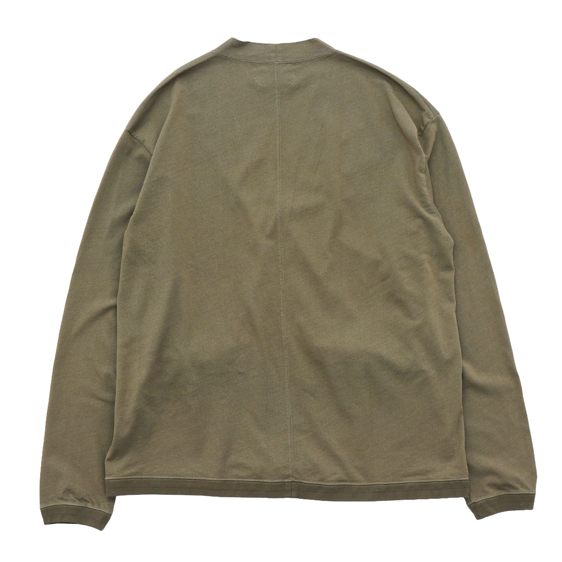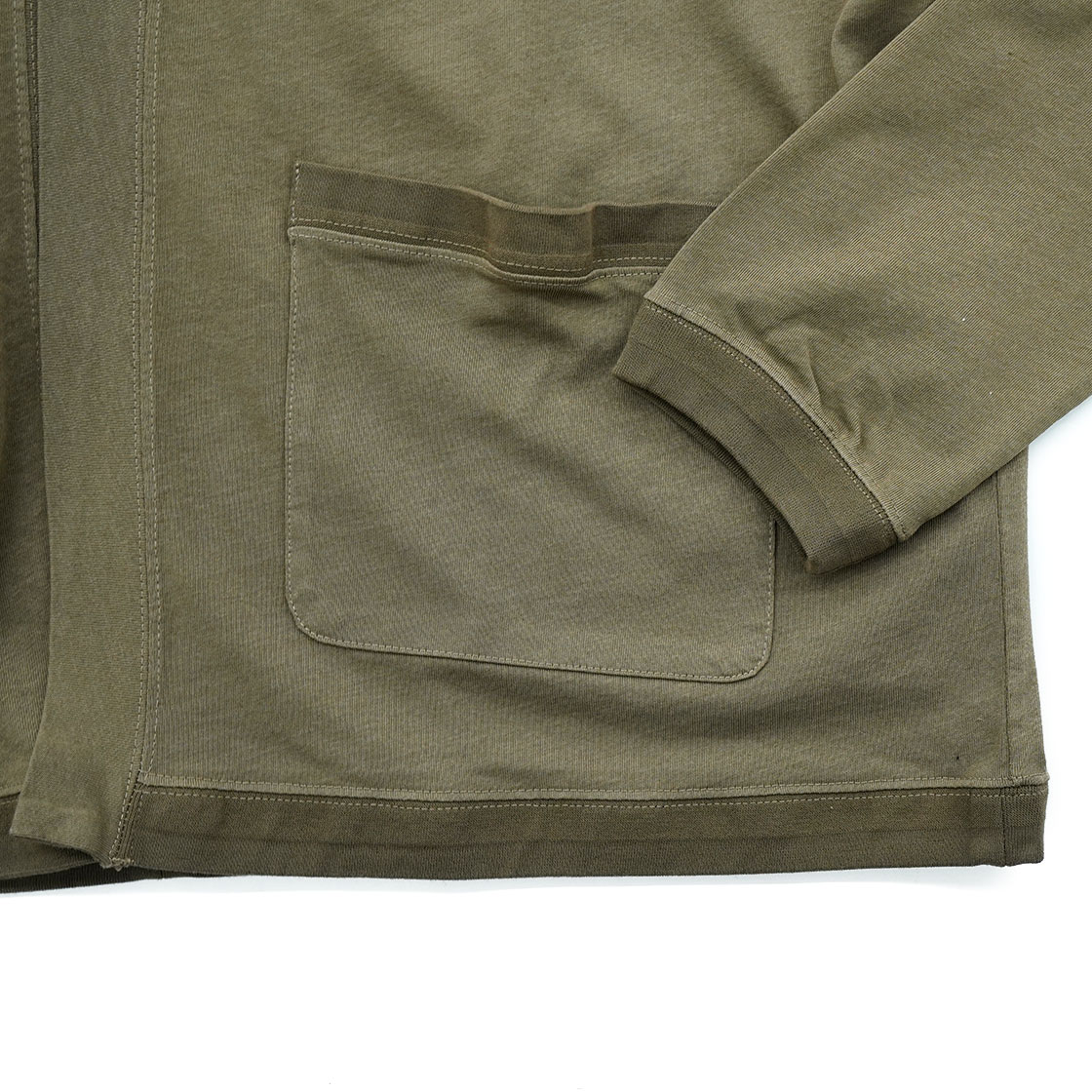 左右にポケット、またポケットにもリブを設け耐久性を高めています。カーディガンにしては珍しく、後身頃の中心で接ぐなど、アウターであることを意識した作りになっています。