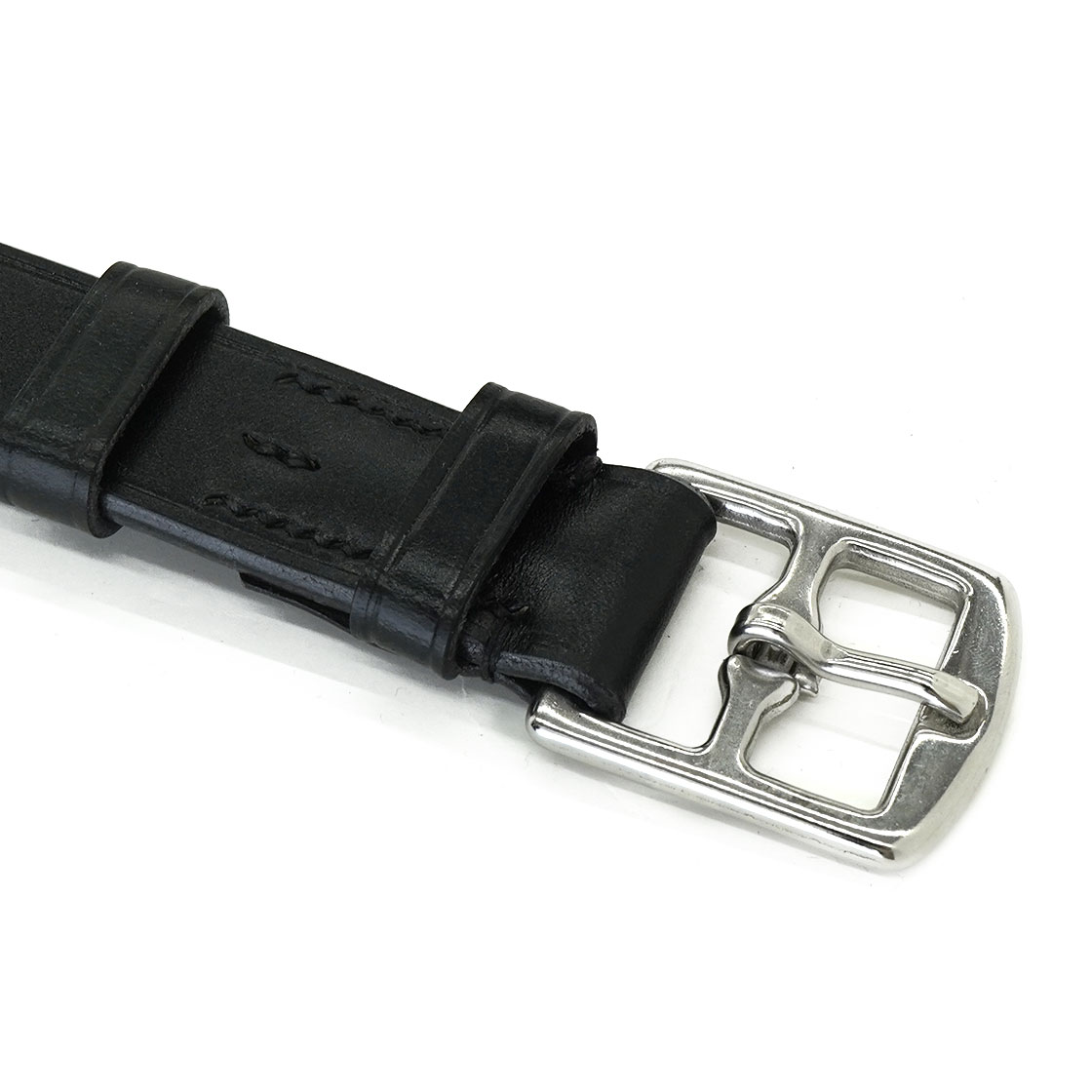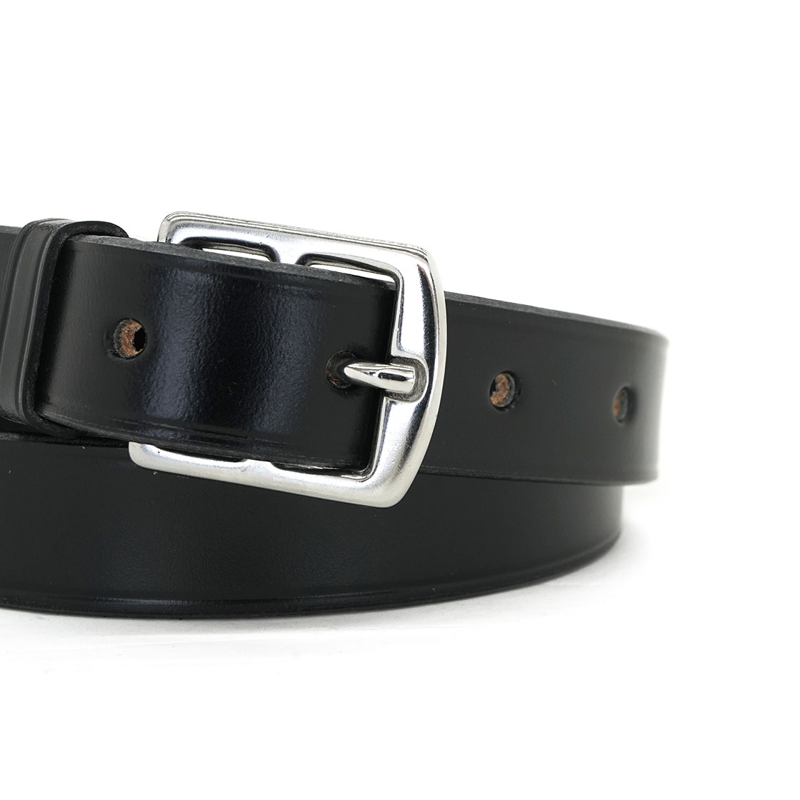 イギリス製ブライドルレザーを使用したベルトです。装飾性を排除したフラットなバックルが特長。これは元々Stirrup(スターラップ=あぶみ=乗馬の際に足を乗せる部分)で使用されていたもので、馬具を作る時と同じ製法で作られています。