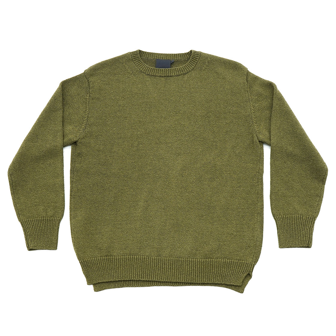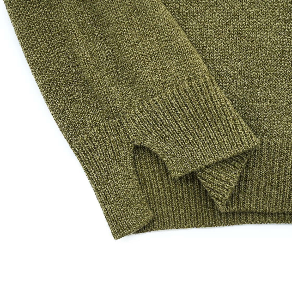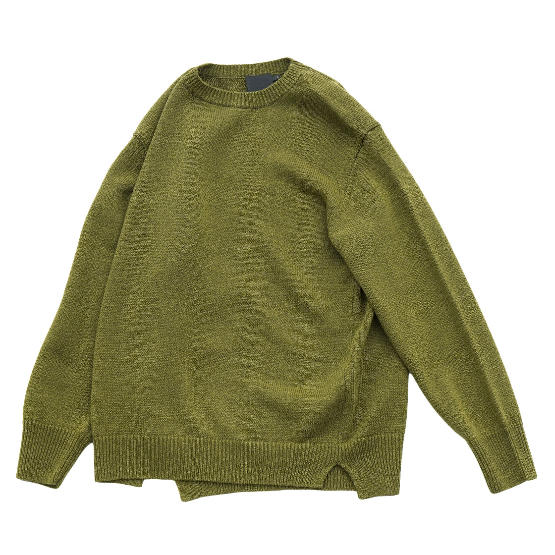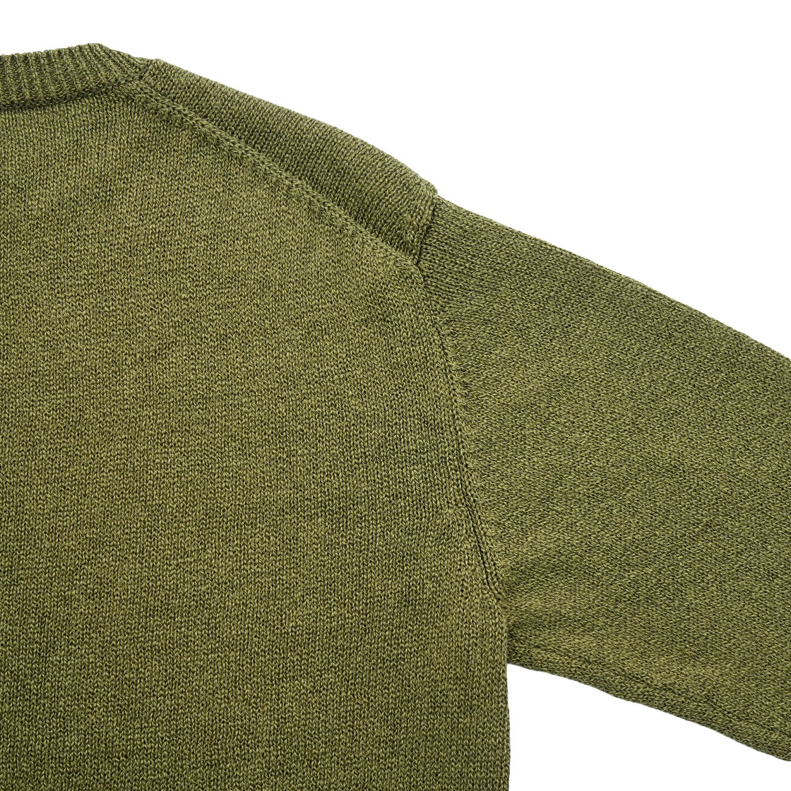 リネンが持つ光沢とシャリ感に加え、コットンが持つドライタッチを合わせ持ち、さらに強度が増しているため、自宅での洗濯も可能になっています。この生地を編んだのは、東北地方で現存する貴重な手横編み機を用いた、熟練の職人。ネックや脇の下の減らし目や丁寧なリンキング等、シンプルなデザインの中に随所に見られる、本当に良い仕事ぶり。
