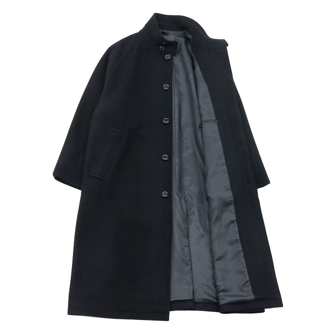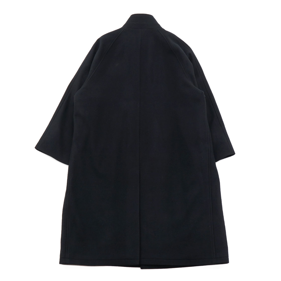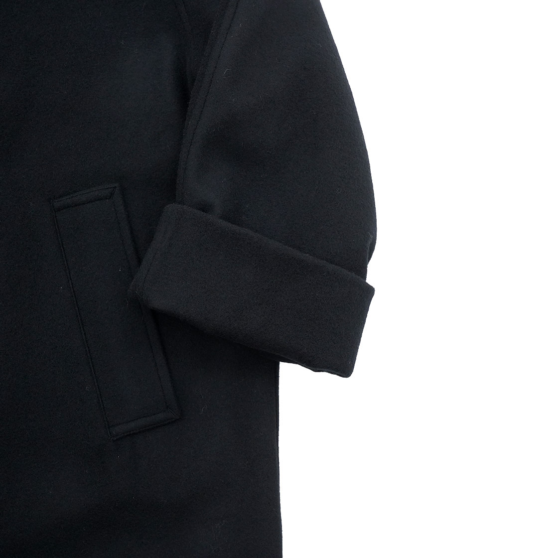 その素材を元に、メルトン生地で織り上げられました。繊維が密に絡まり風も通しにくく、とても暖かく過ごせるコートです。