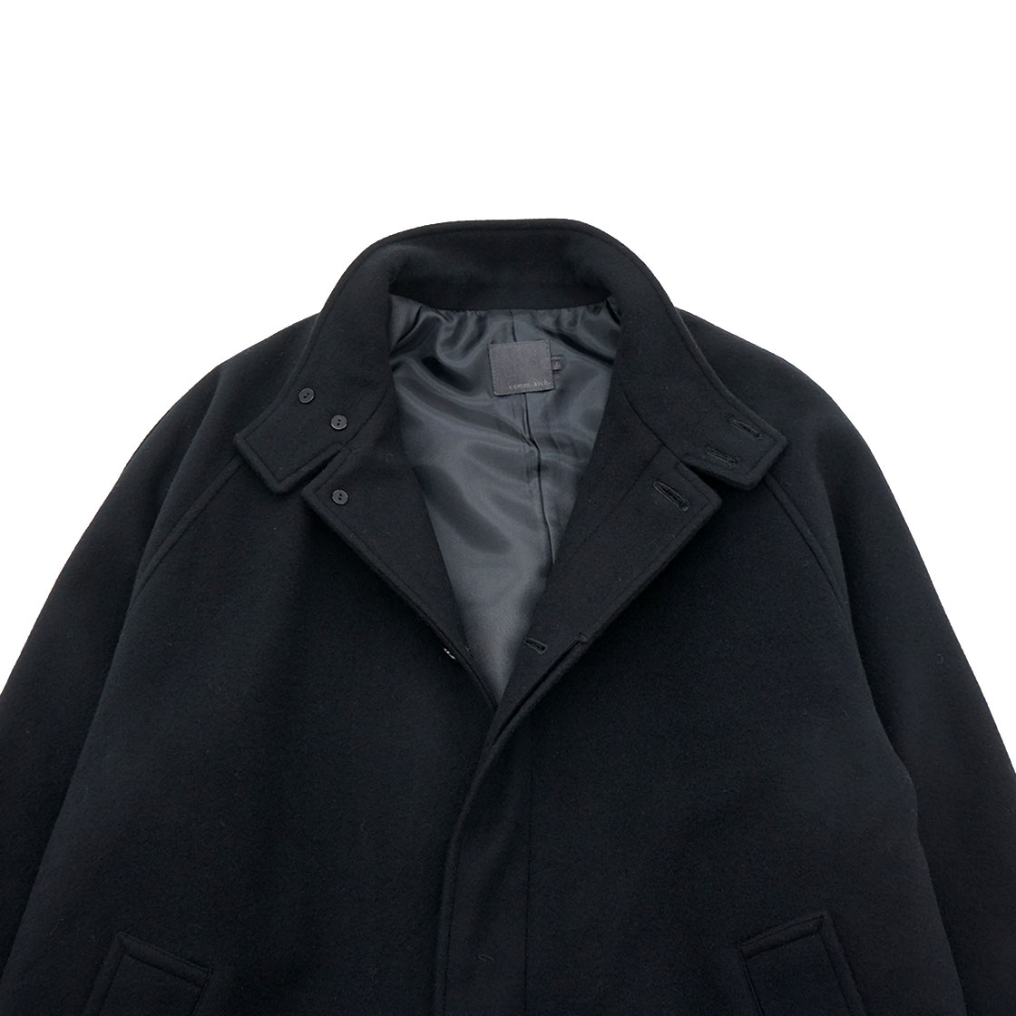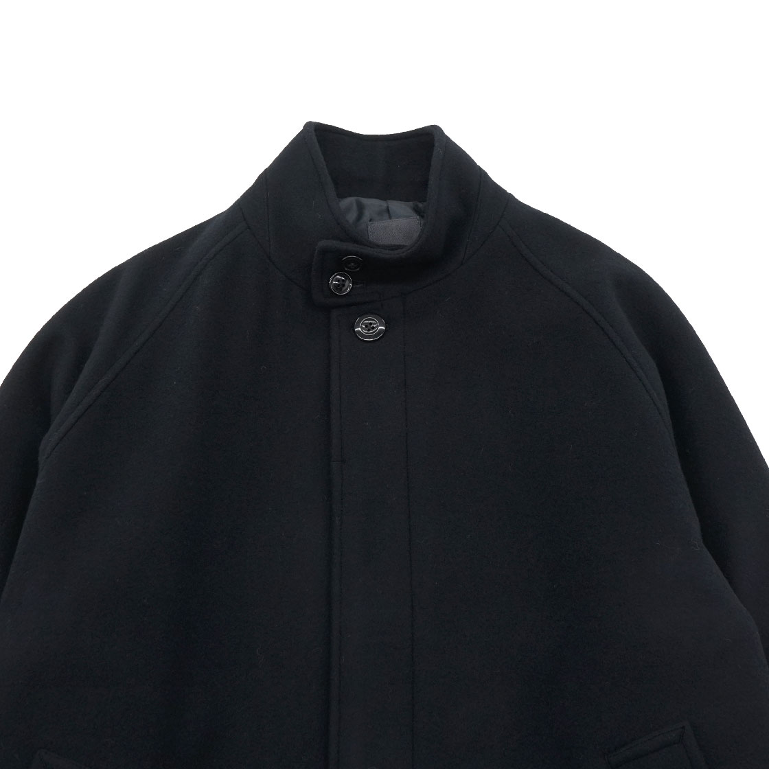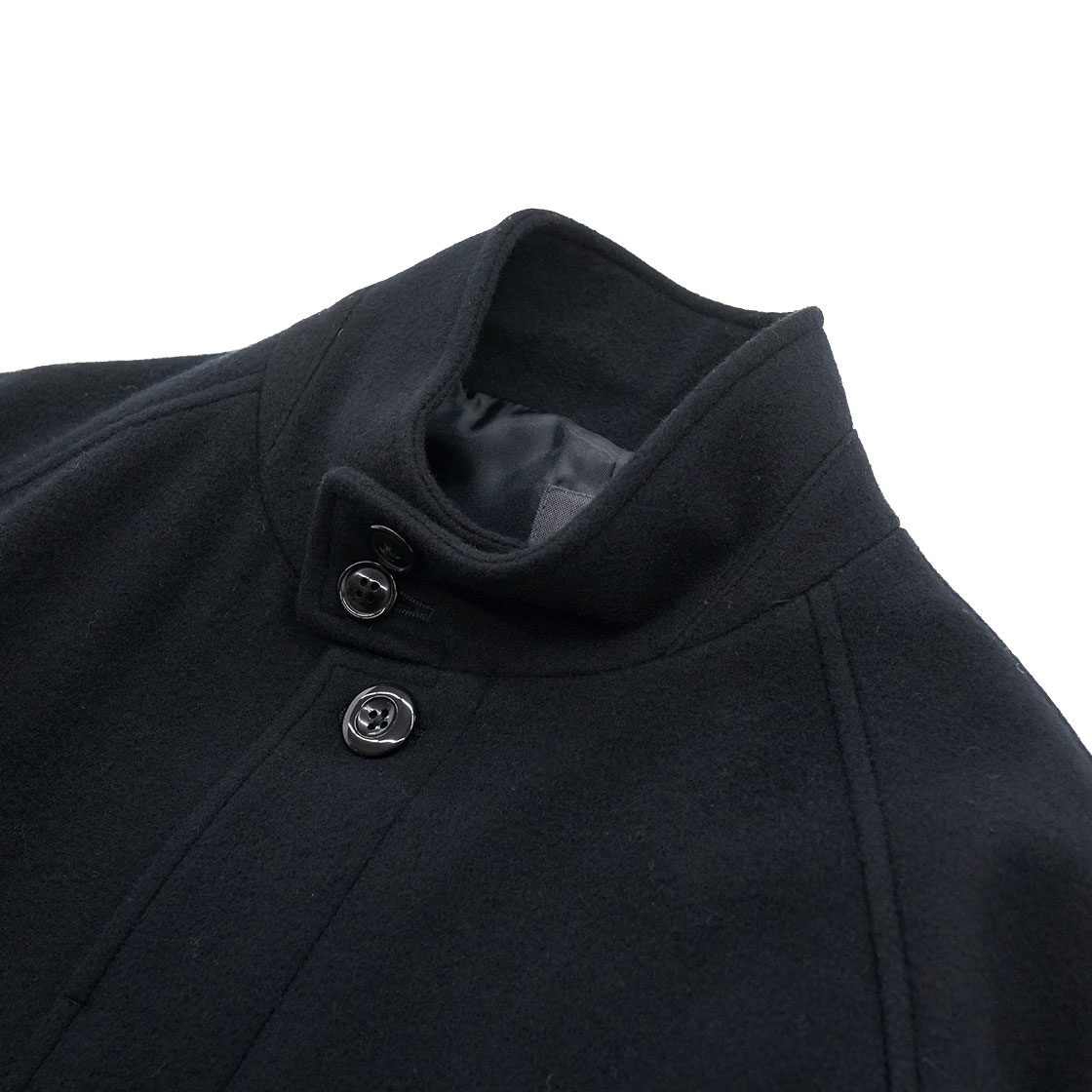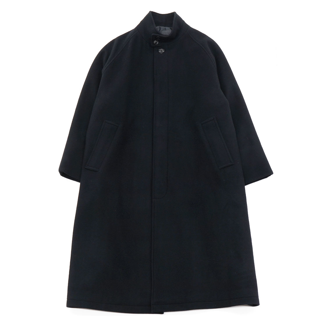 その素材を元に、メルトン生地で織り上げられました。繊維が密に絡まり風も通しにくく、とても暖かく過ごせるコートです。