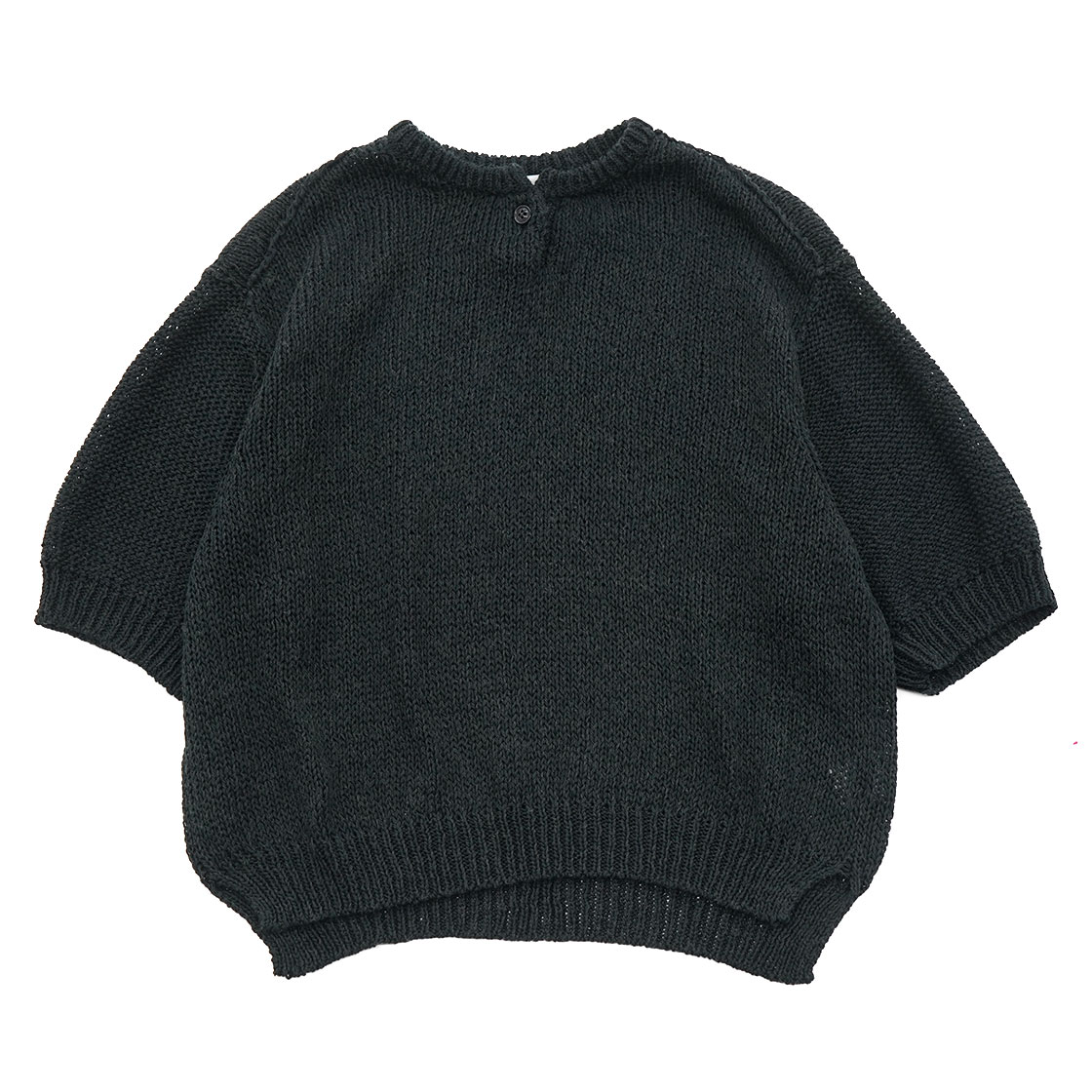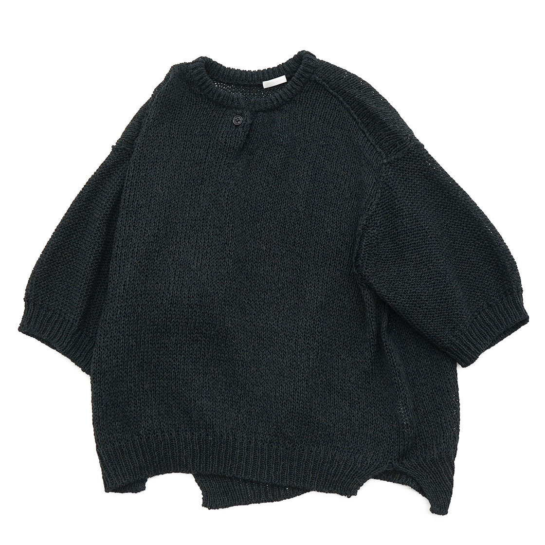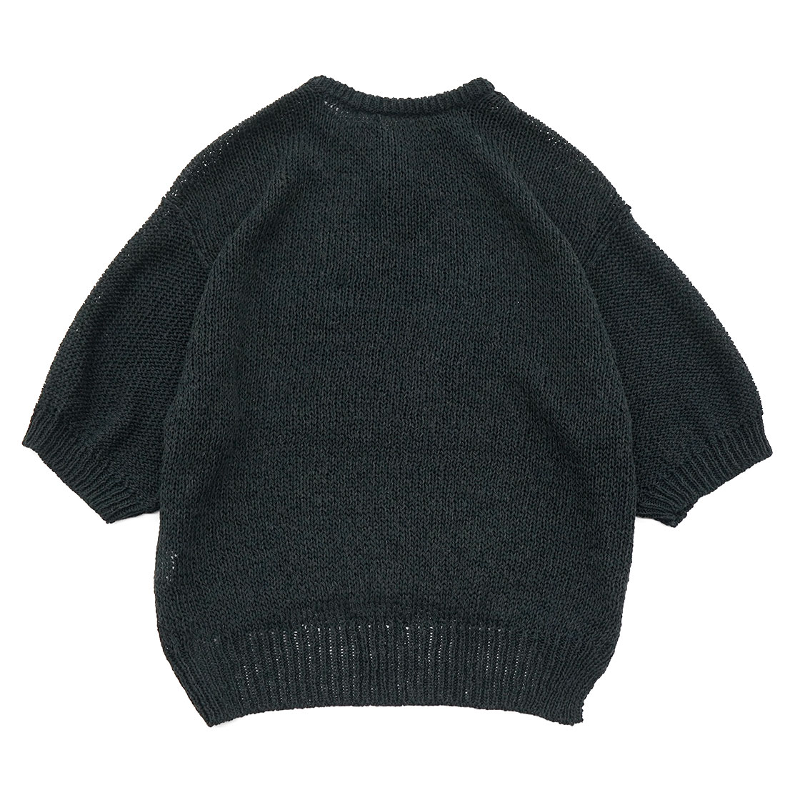 また、部位ごとに表編みと裏編みを使い分けることで、生地の素材感・立体感を表現しているところがcomm. arch.らしい細やかなデザイン。度目も通常より緩めに編むことで糸と糸の間に隙間ができるので、ニットであるにもかかわらず透けやすく、それが清涼感と軽やかさを与えています。