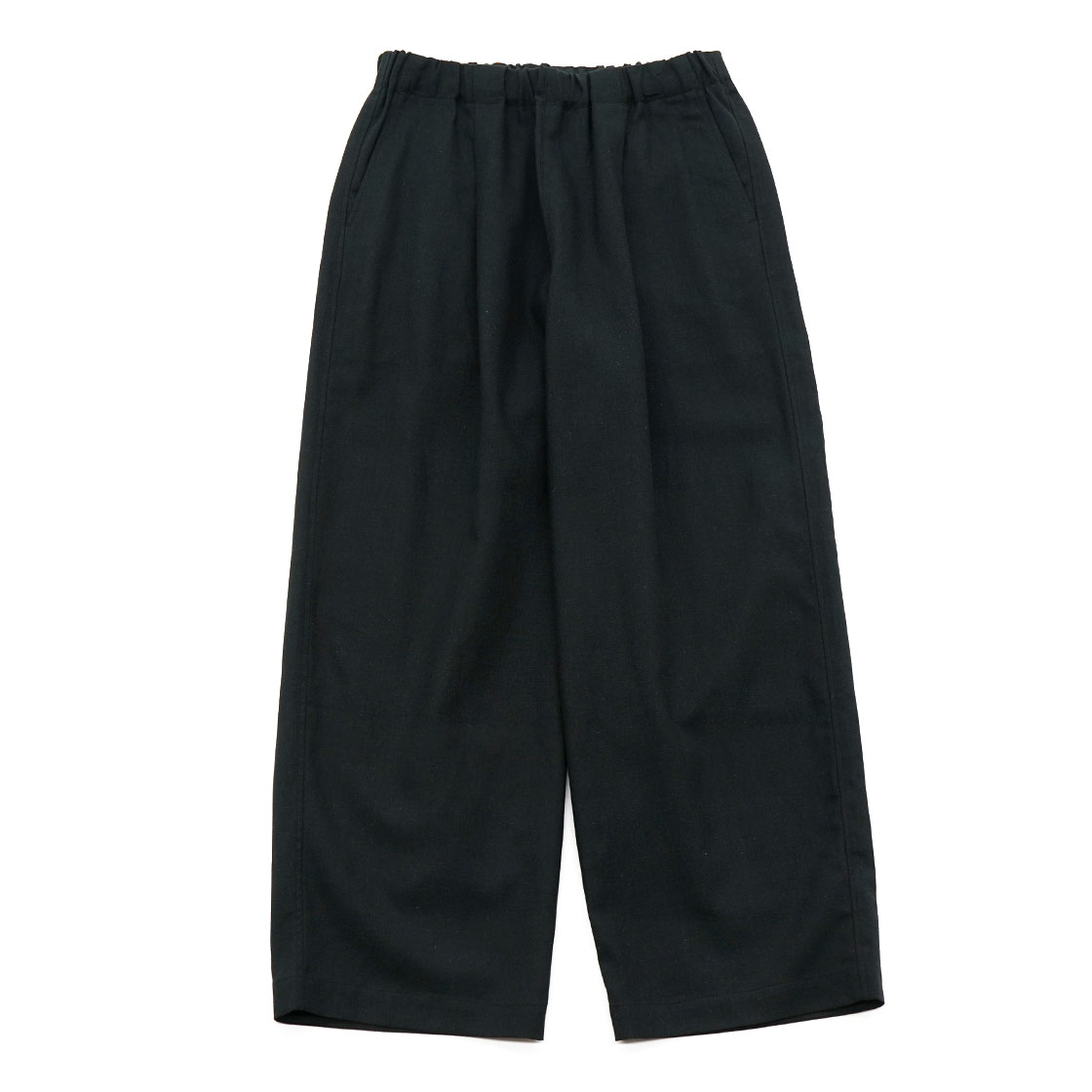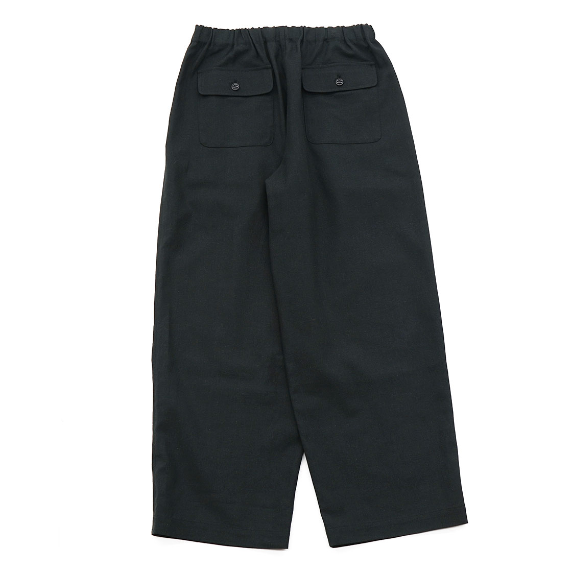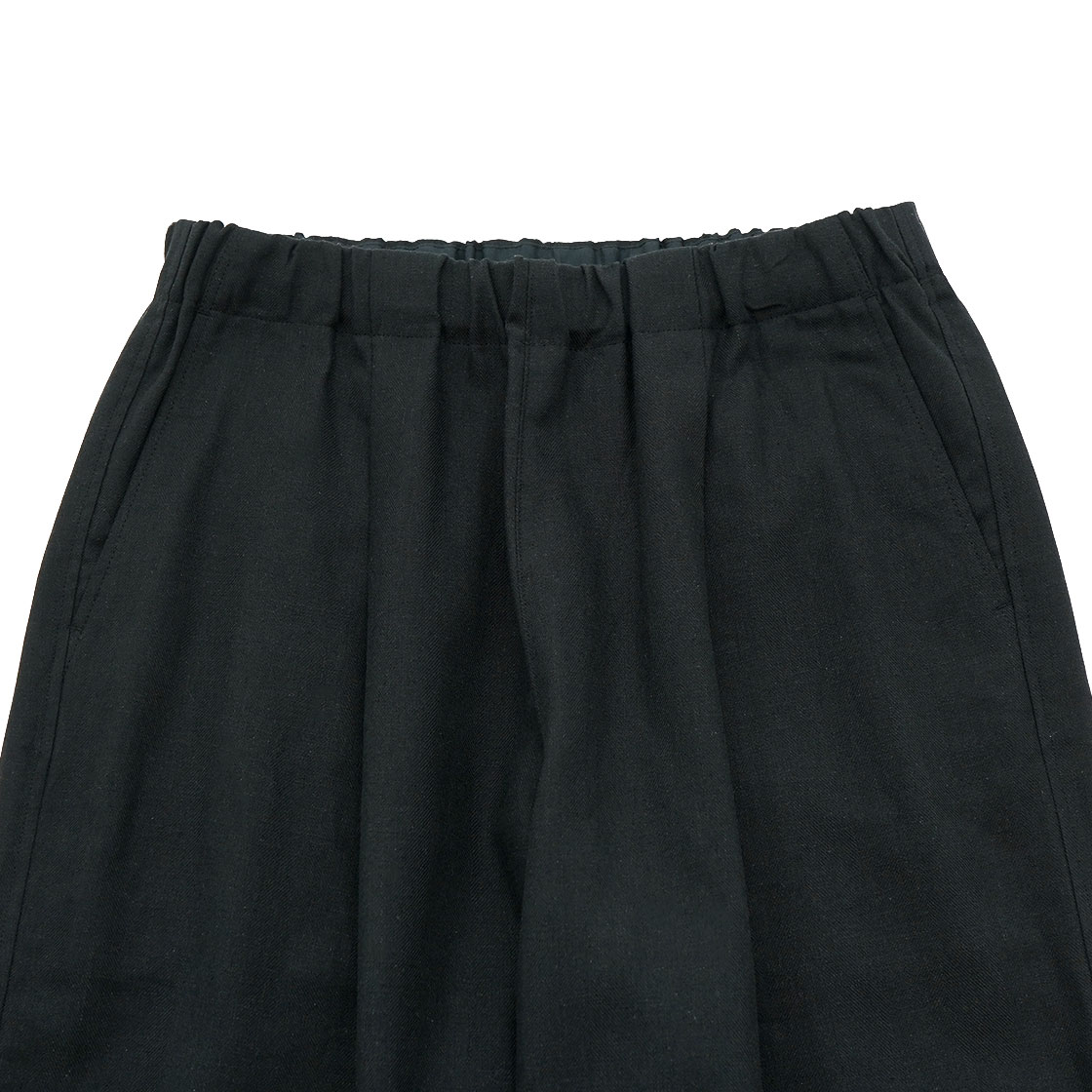 形はワイドパンツ。空気の抜けも良く、真夏も活躍するアイテムです。ウエストはドローコードで調節が可能です。