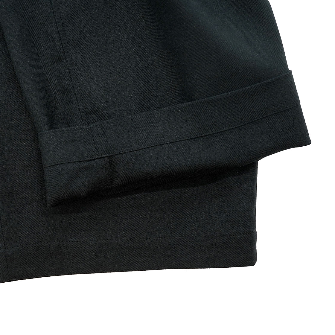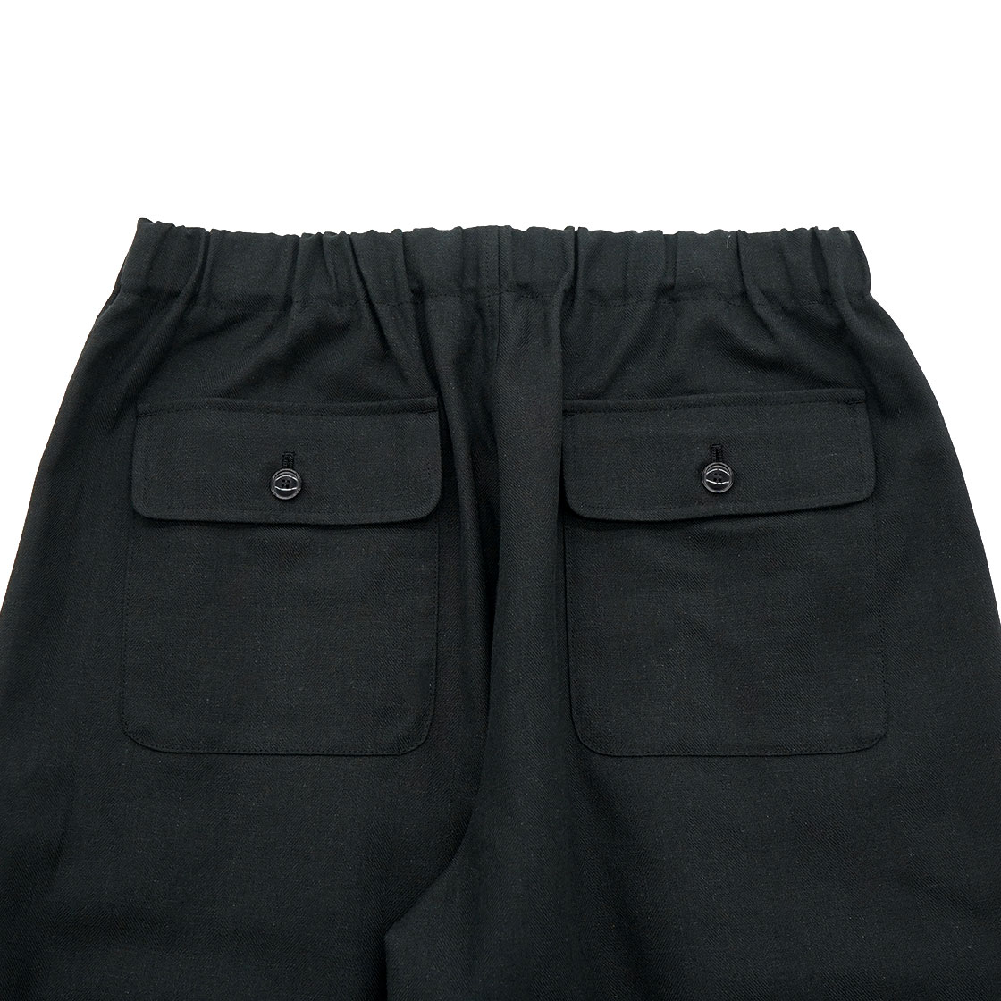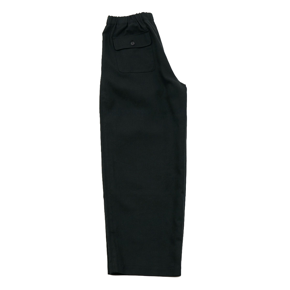 形はワイドパンツ。空気の抜けも良く、真夏も活躍するアイテムです。ウエストはドローコードで調節が可能です。
