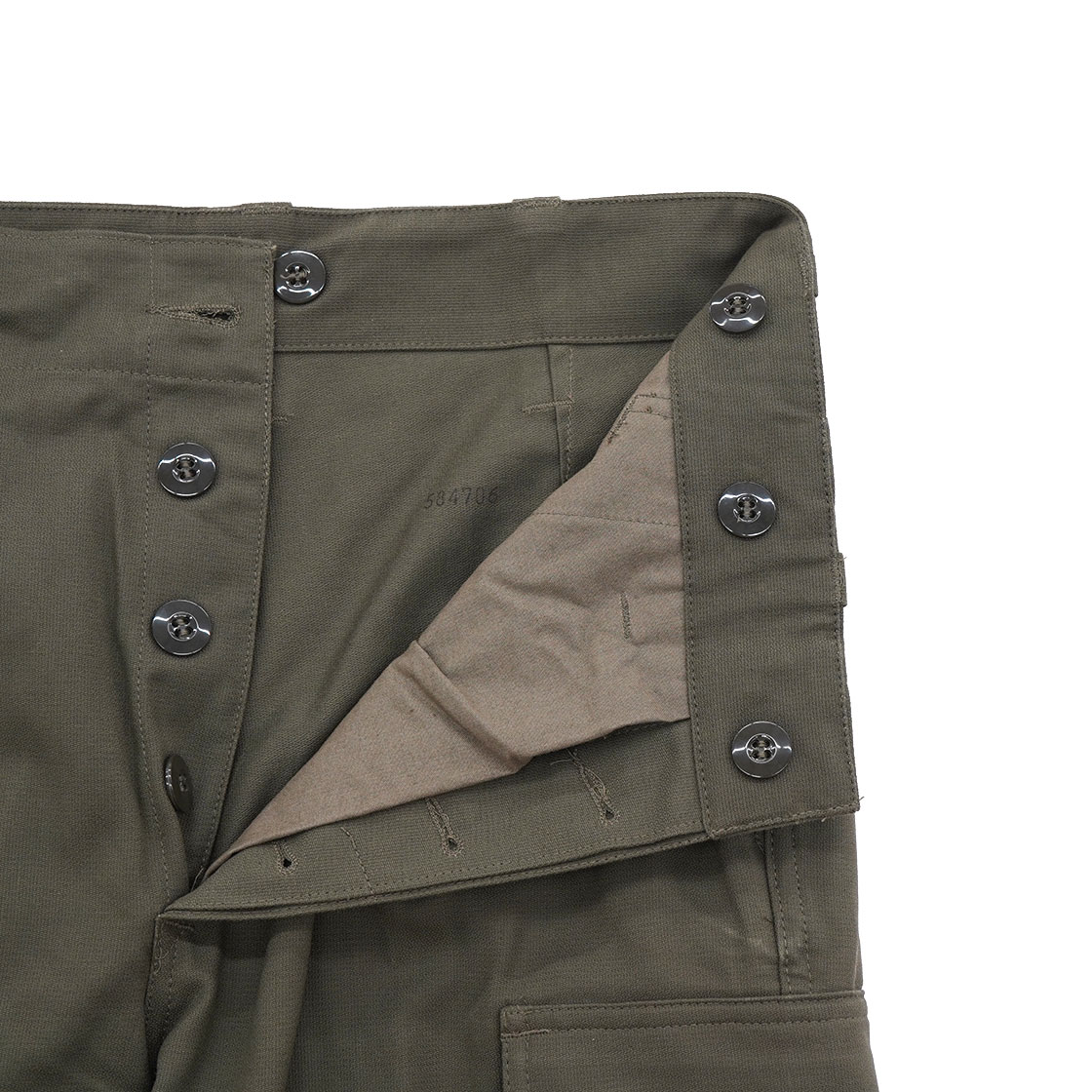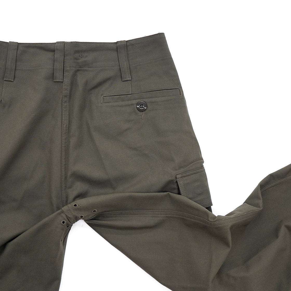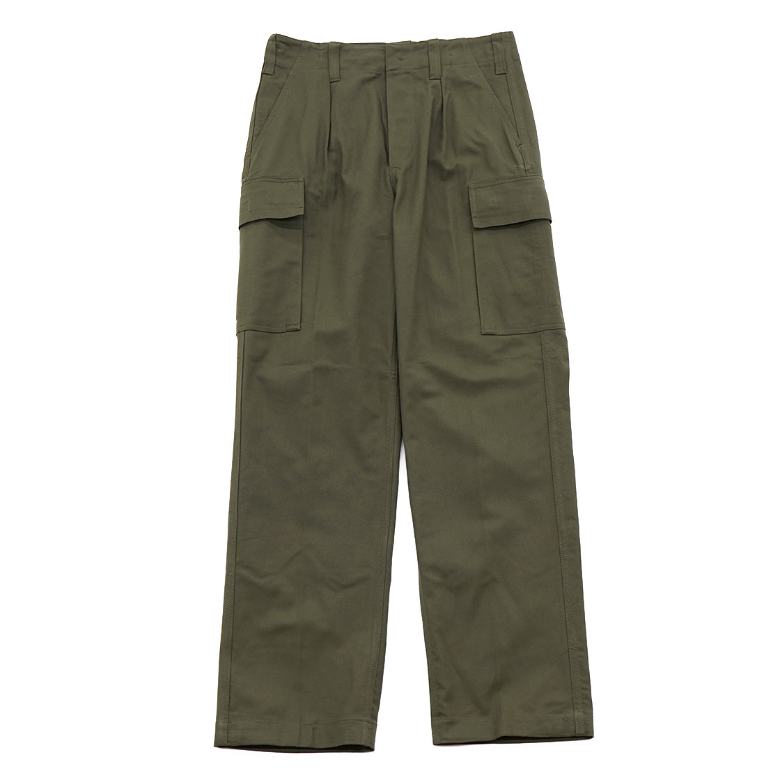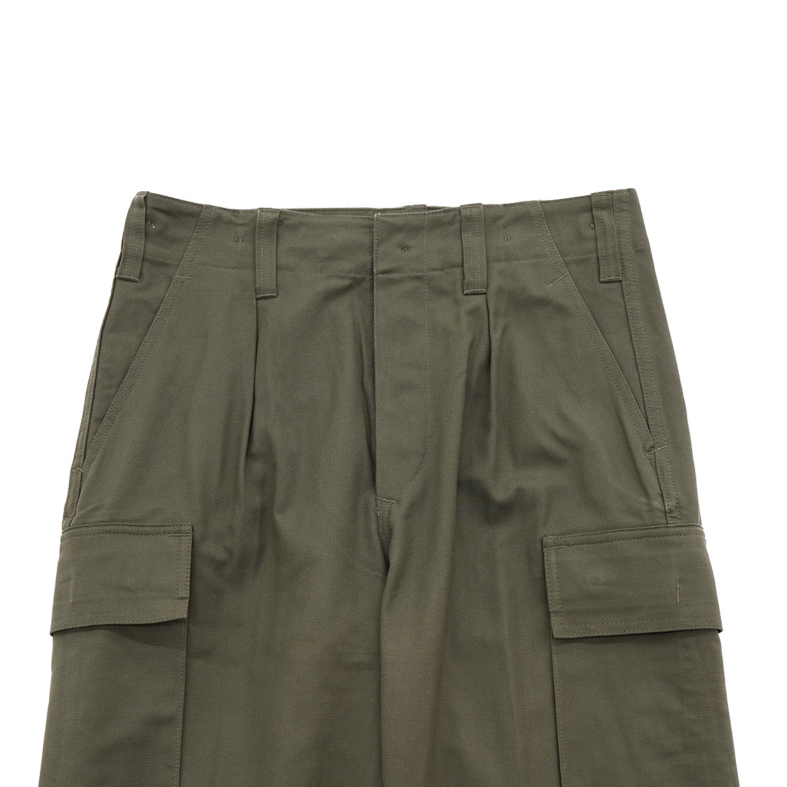 90年代頃から「ジャーマンモールスキンカーゴパンツ」と呼ばれるようになった、ドイツ軍のカーゴパンツ。モールスキンといいつつも、生地を見るとピケのようにも見えます。いずれにせよ耐久性のある生地には変わりなく、筋張ったアタリも出る育て甲斐のある生地です。