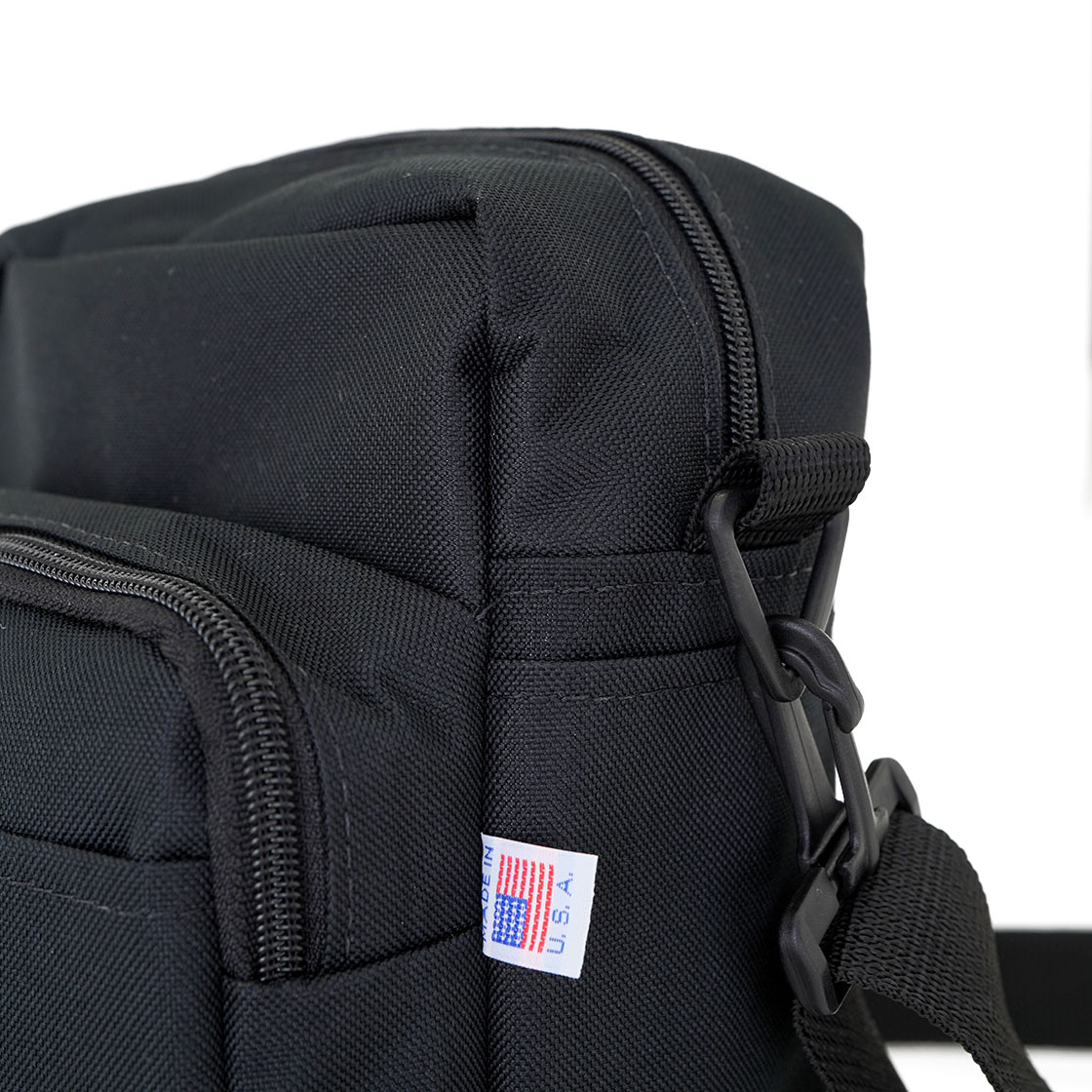 その工場の倉庫に、デッドストックの状態で眠っていたアメリカ製のバッグ達。このミニショルダーは、ポケットが6個もついてますが、果たして便利かどうか。どうにかしようと試行錯誤した結果誕生した、迷デザインです。