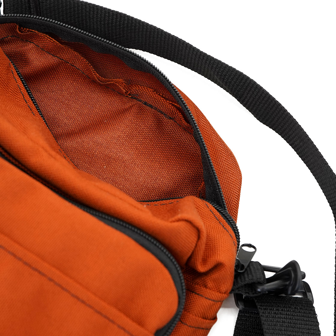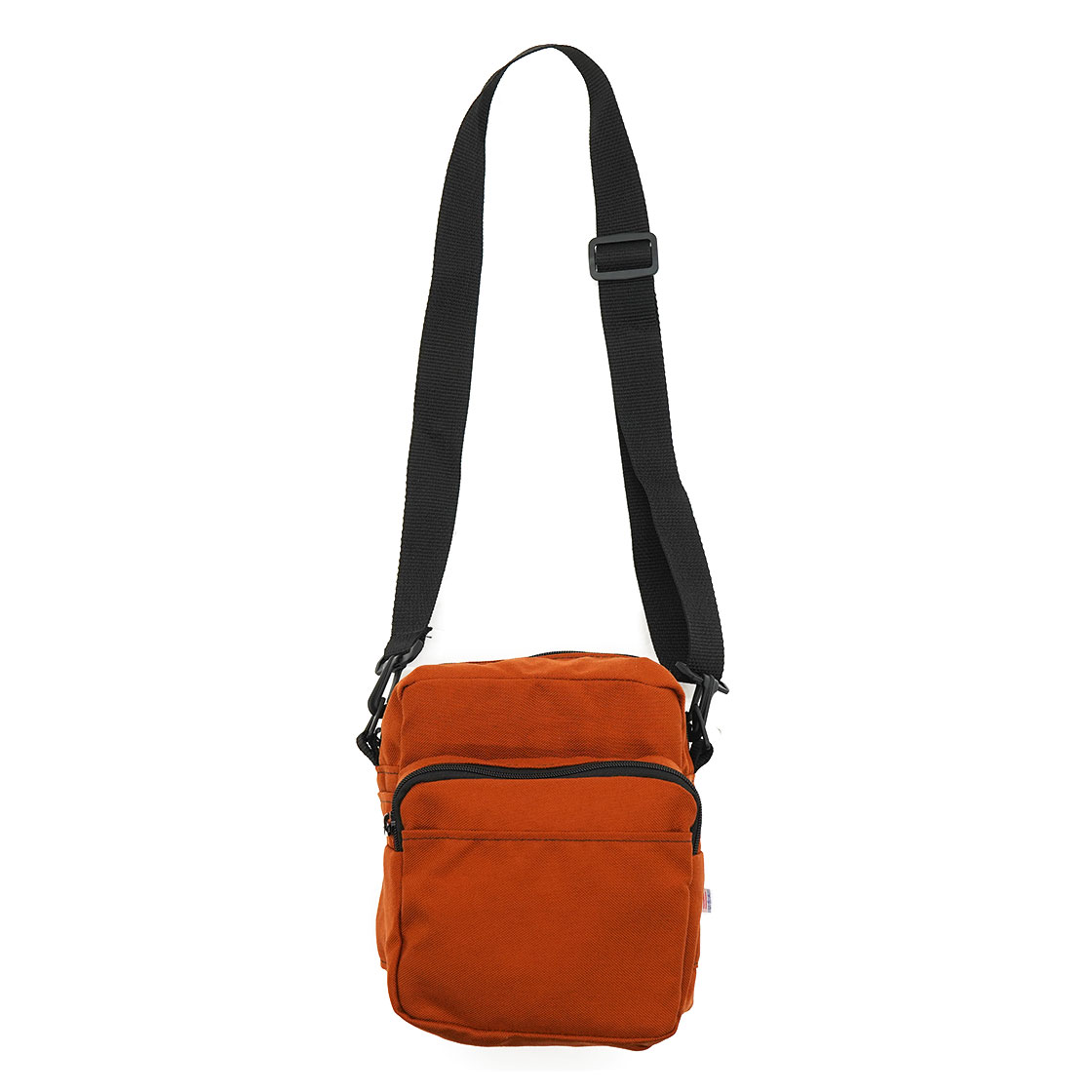 その工場の倉庫に、デッドストックの状態で眠っていたアメリカ製のバッグ達。このミニショルダーは、ポケットが6個もついてますが、果たして便利かどうか。どうにかしようと試行錯誤した結果誕生した、迷デザインです。
