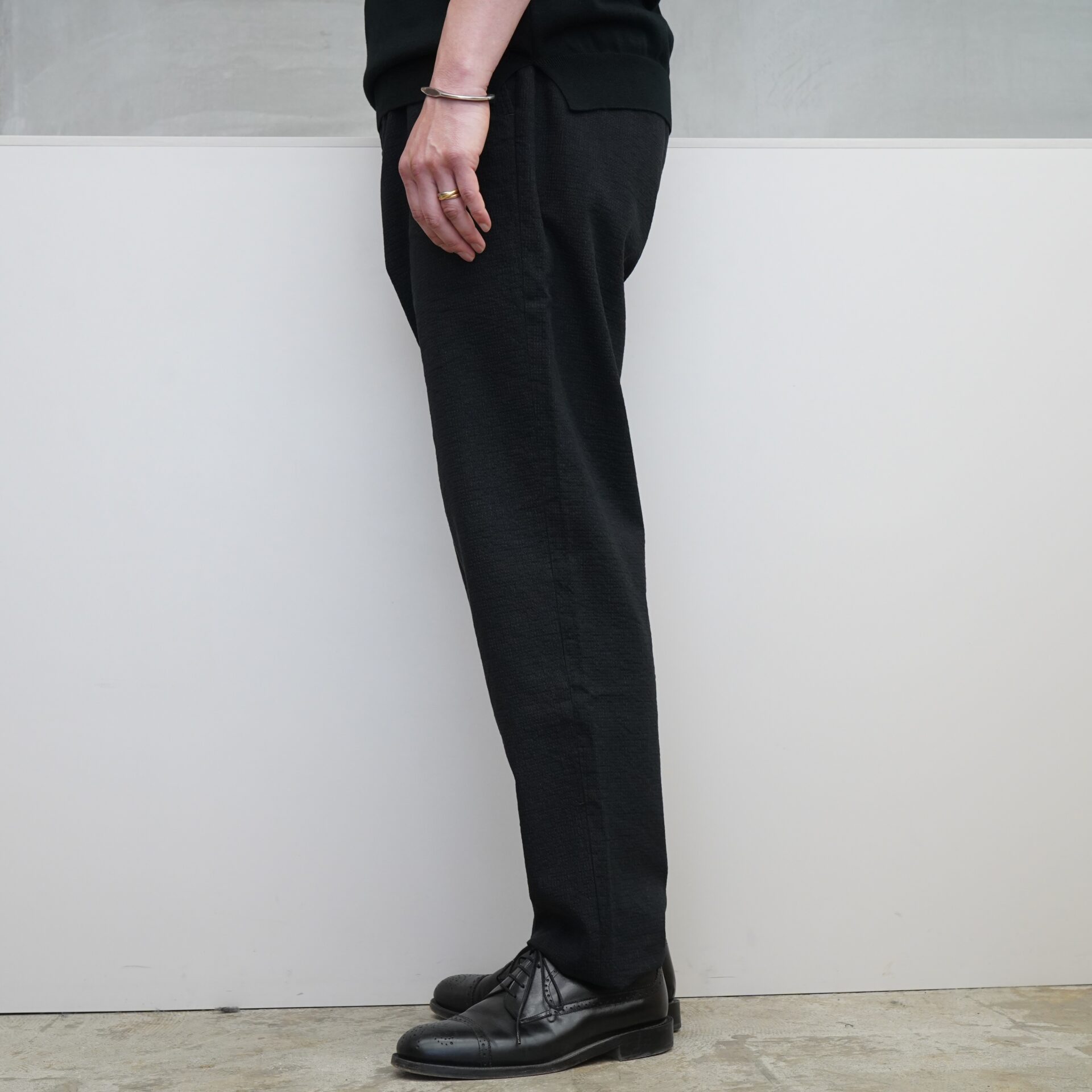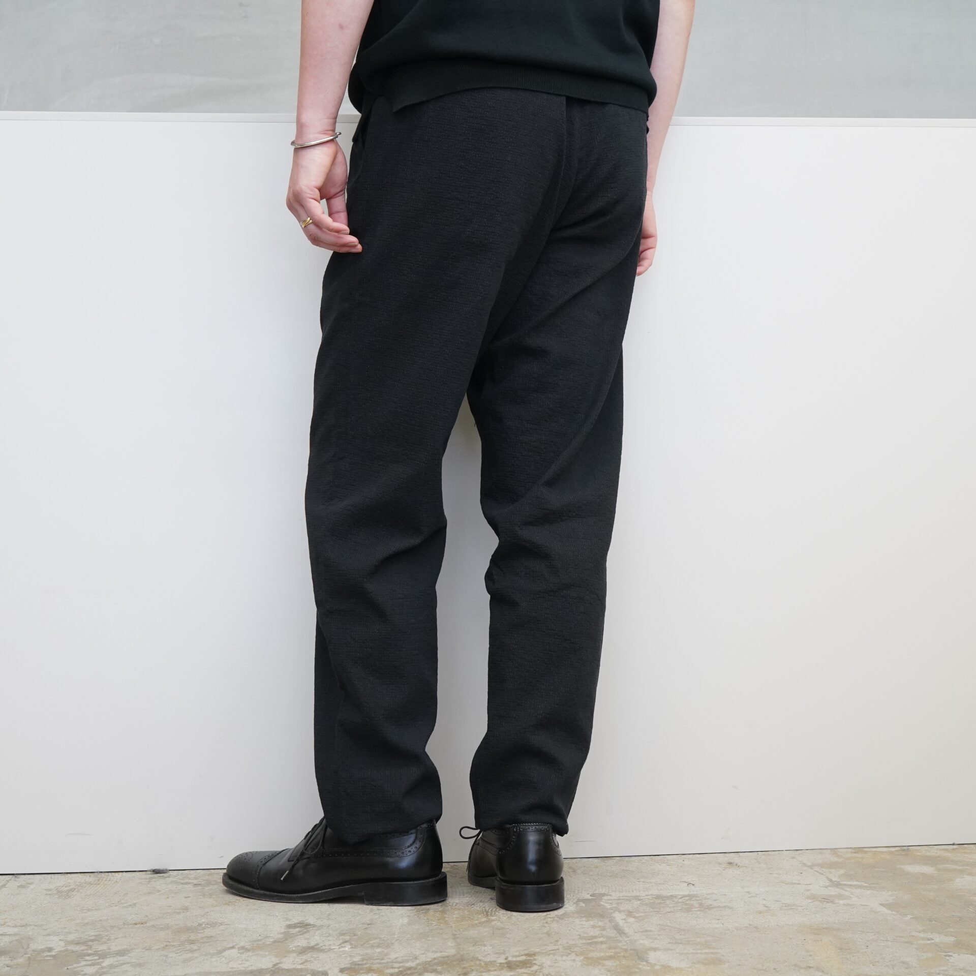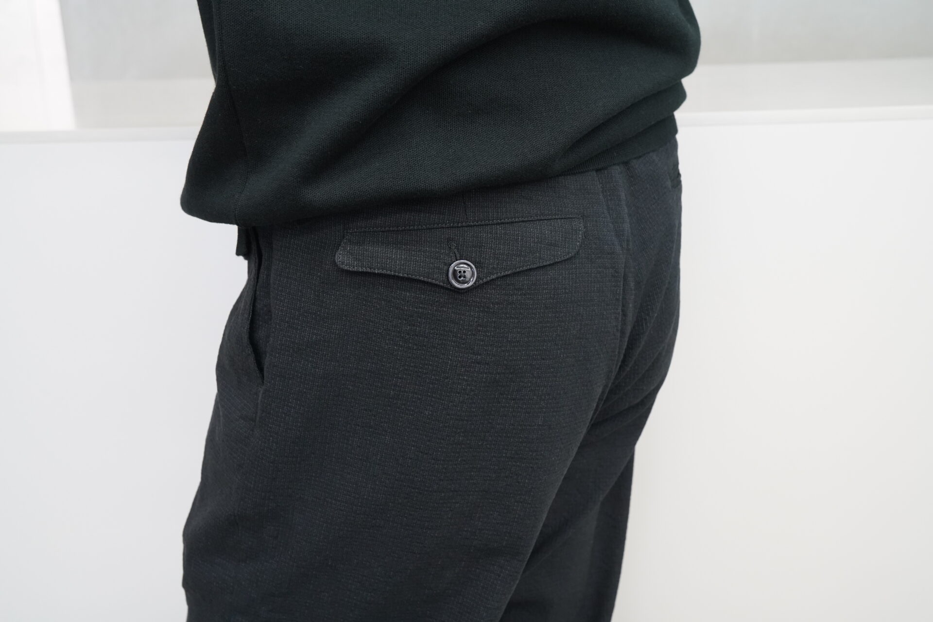 シンプルなトラウザーズではありますが、背景はしっかりと。