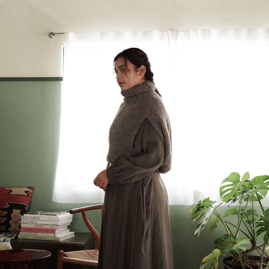 ワンピースと合わせると、修道院で着られている服のようなとてもクラシックな印象になります。