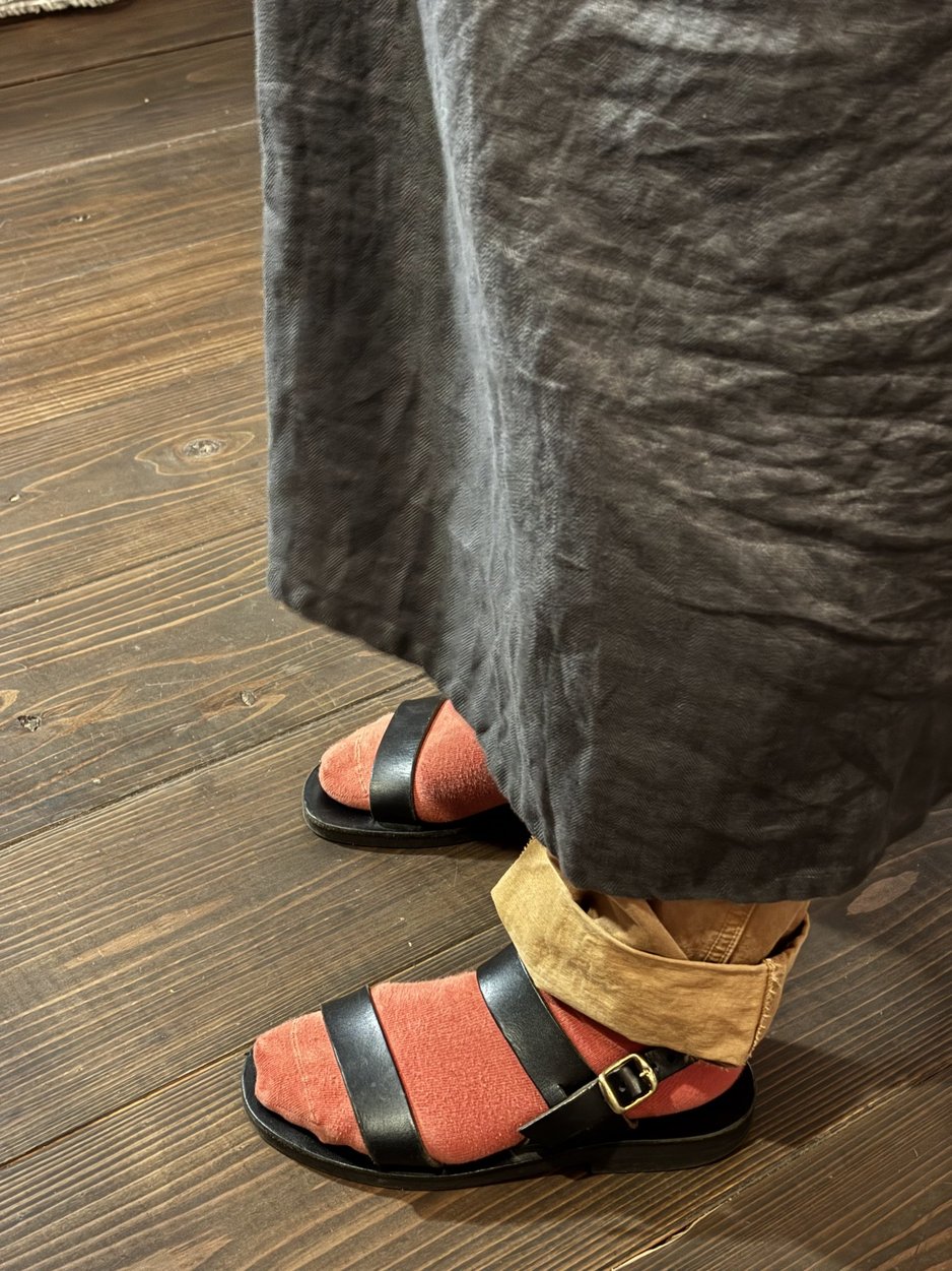 例のフランスの修道院で作られたサンダルですが、その修道院の方々と同じようにソックスと合わせて履いてくれてました。