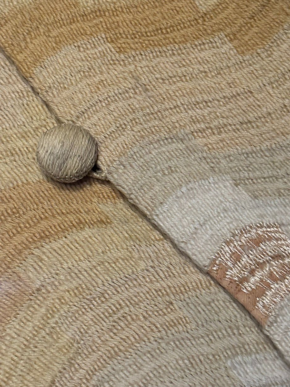 こちらの生地はウールとシルクを用い、コーチングステッチという技法で作られた総刺繍生地。