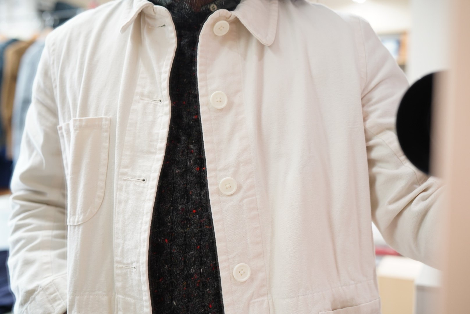 白のカバーオールは、どちらかというとイギリス物ではなくアメリカ物、例えばLeeのホワイトキャンバス生地のカバーオールのイメージでオーダーしました。