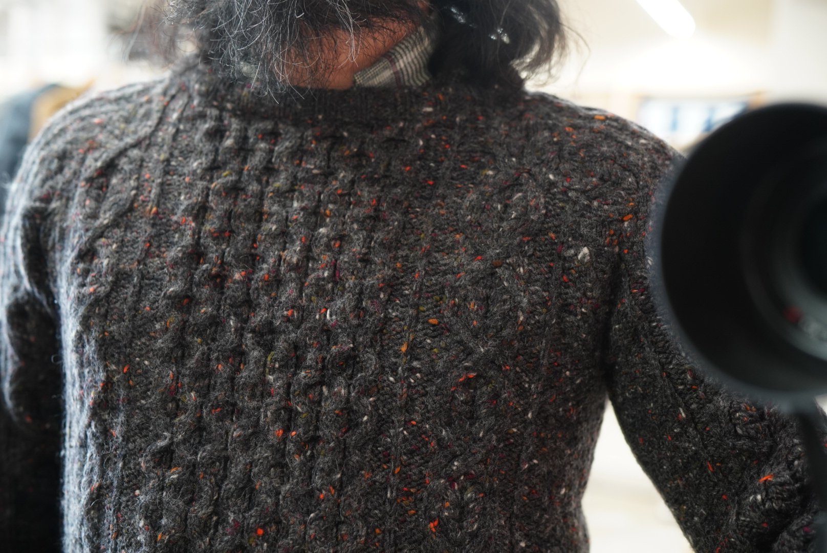 でもニットはアランニットなんだ?と思われるかもしれません。しかもネップが目立つドネガルヤーンで、アイルランド臭がプンプンするやつ。