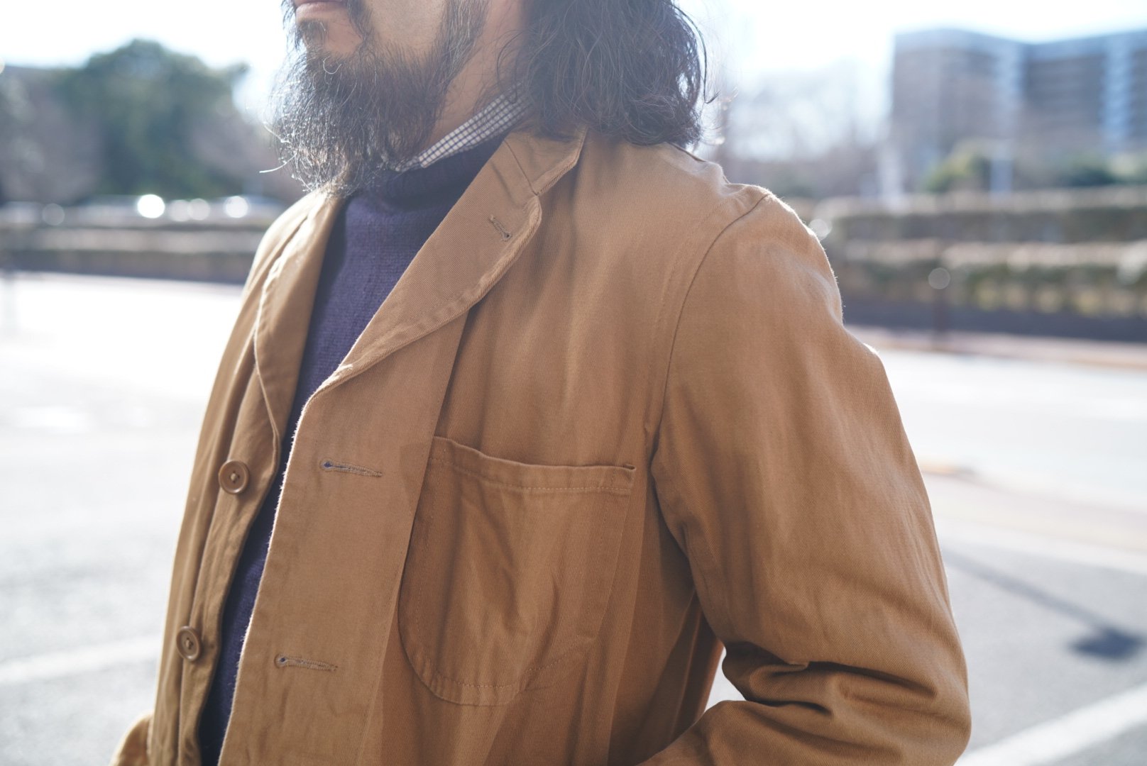 OLD TOWNのジャケットの中では比較的コンパクトなサイズなので、ミディアムドリルという軽めの生地でオーダーしました。