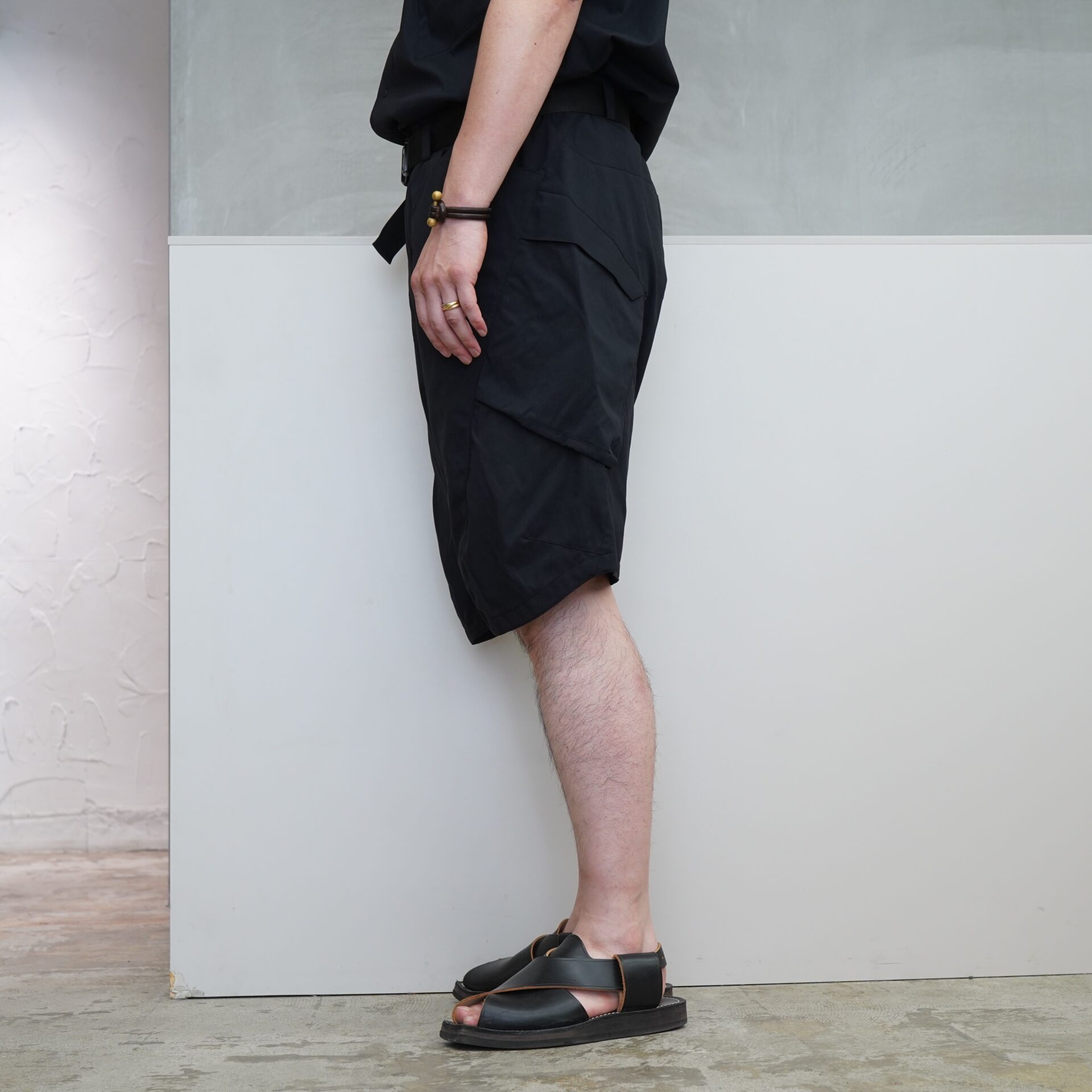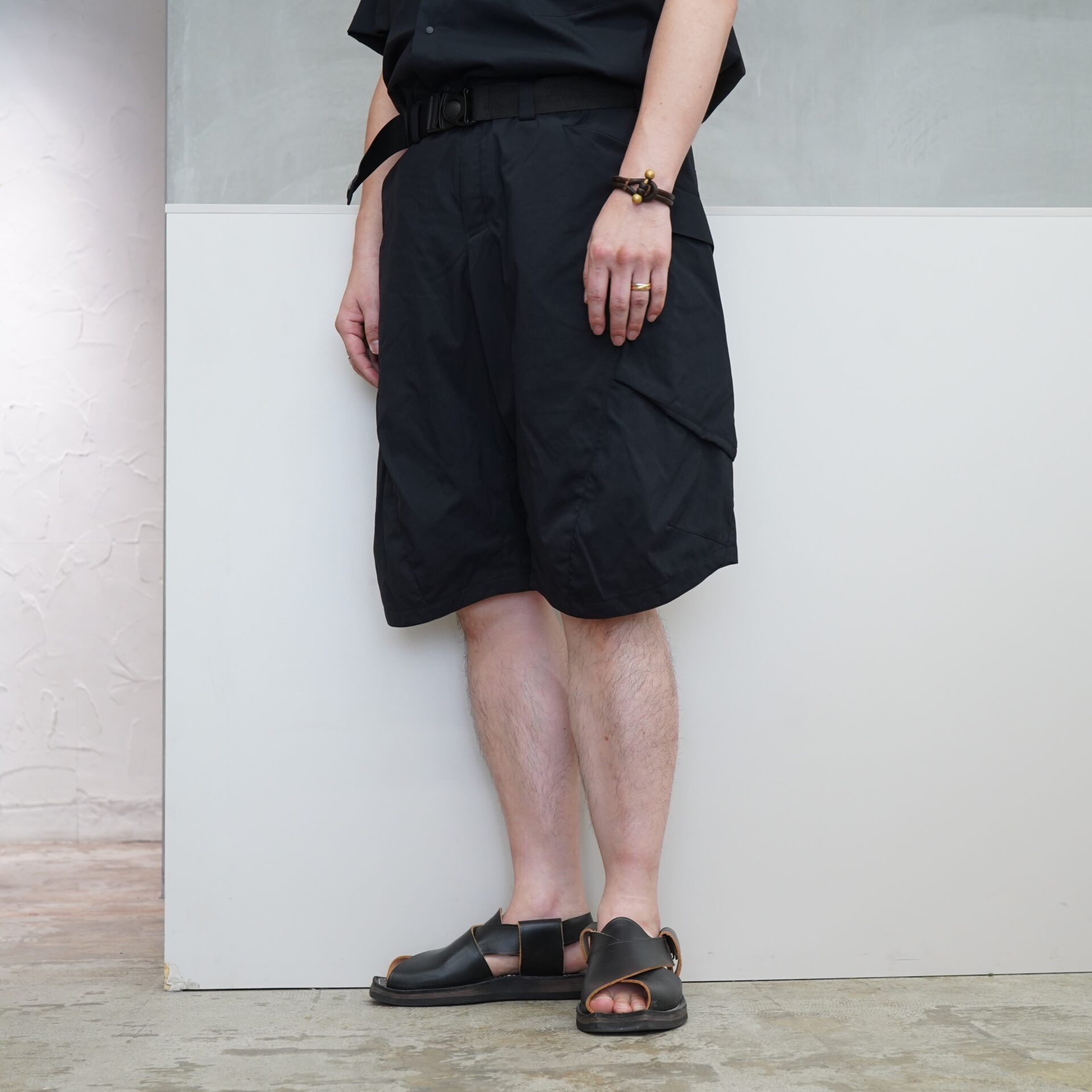 立体裁断に合わせて、スラント(傾斜)させたカーゴポケットが特徴の、5ポケットバギーショーツ。
