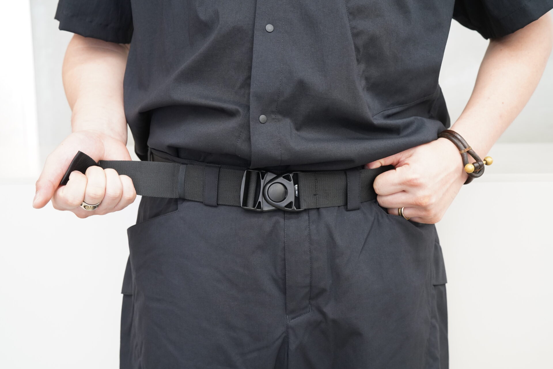 太目のベルトと可動式のバックルがアクセントに。でもこれって、バッグ用なんじゃないですかね?