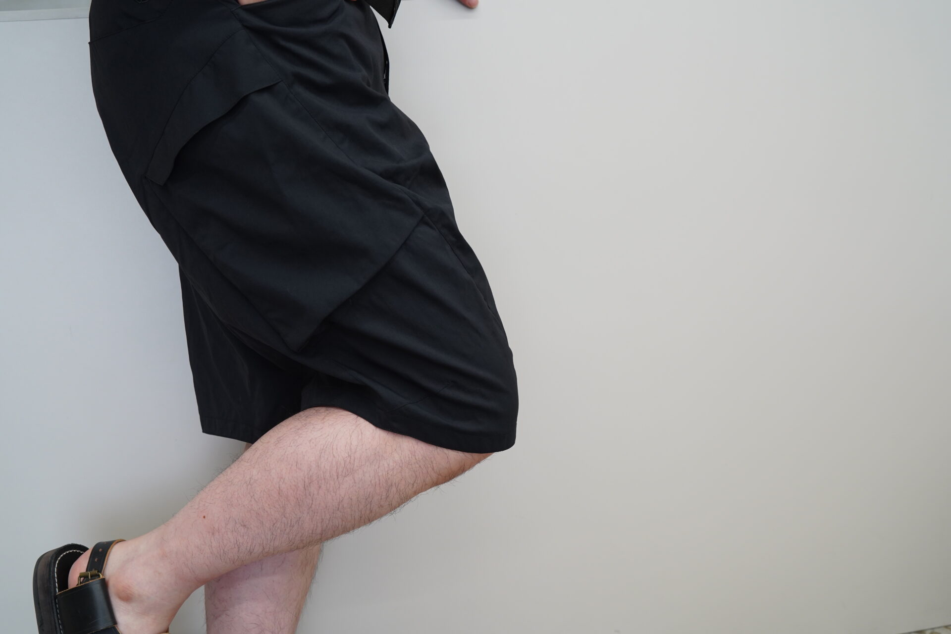 極太のカーゴショーツで、いつにも増してパターンが独特。