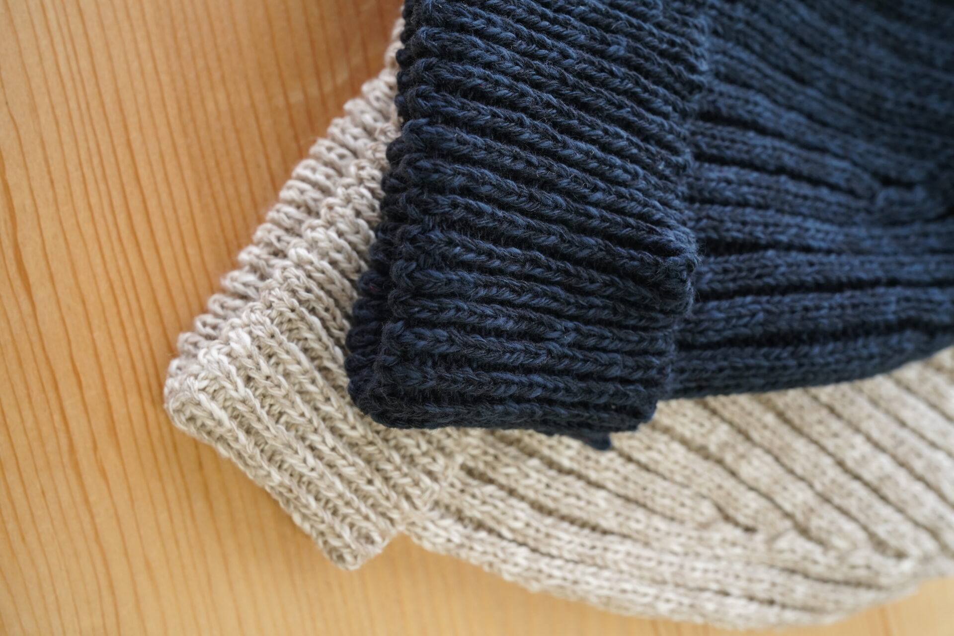 なんか折り返してある部分に、エッジが立ってるんです。普通はニットがそのまま折り返してあるだけなのに。
