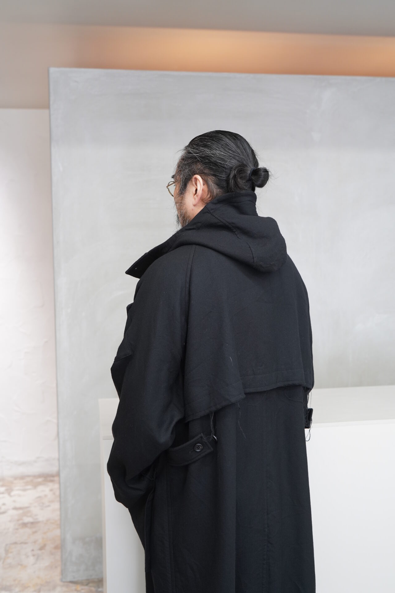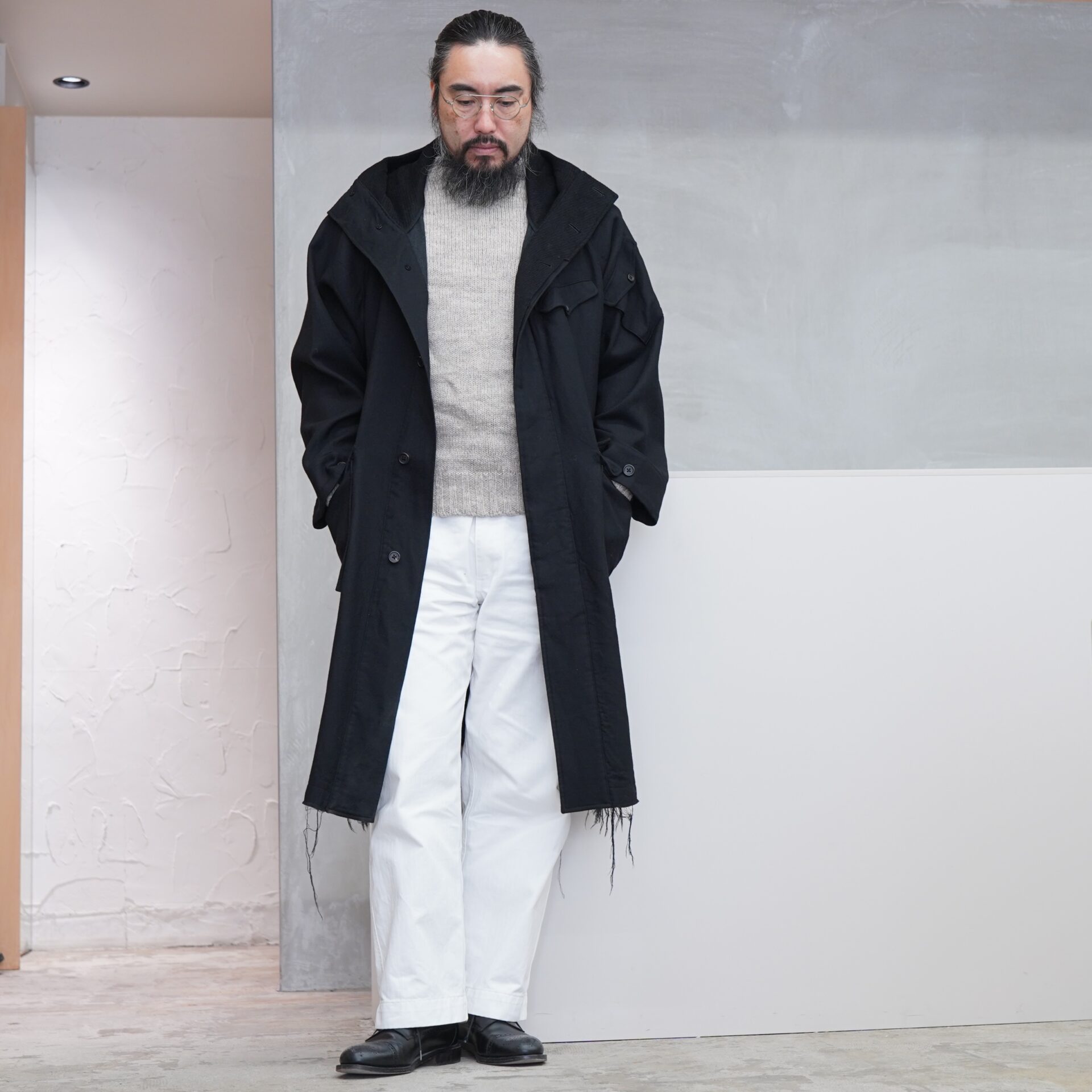 昨年のダメージ風編みニットなどから続く、トーナイのボロルックの流れを踏襲たコート。