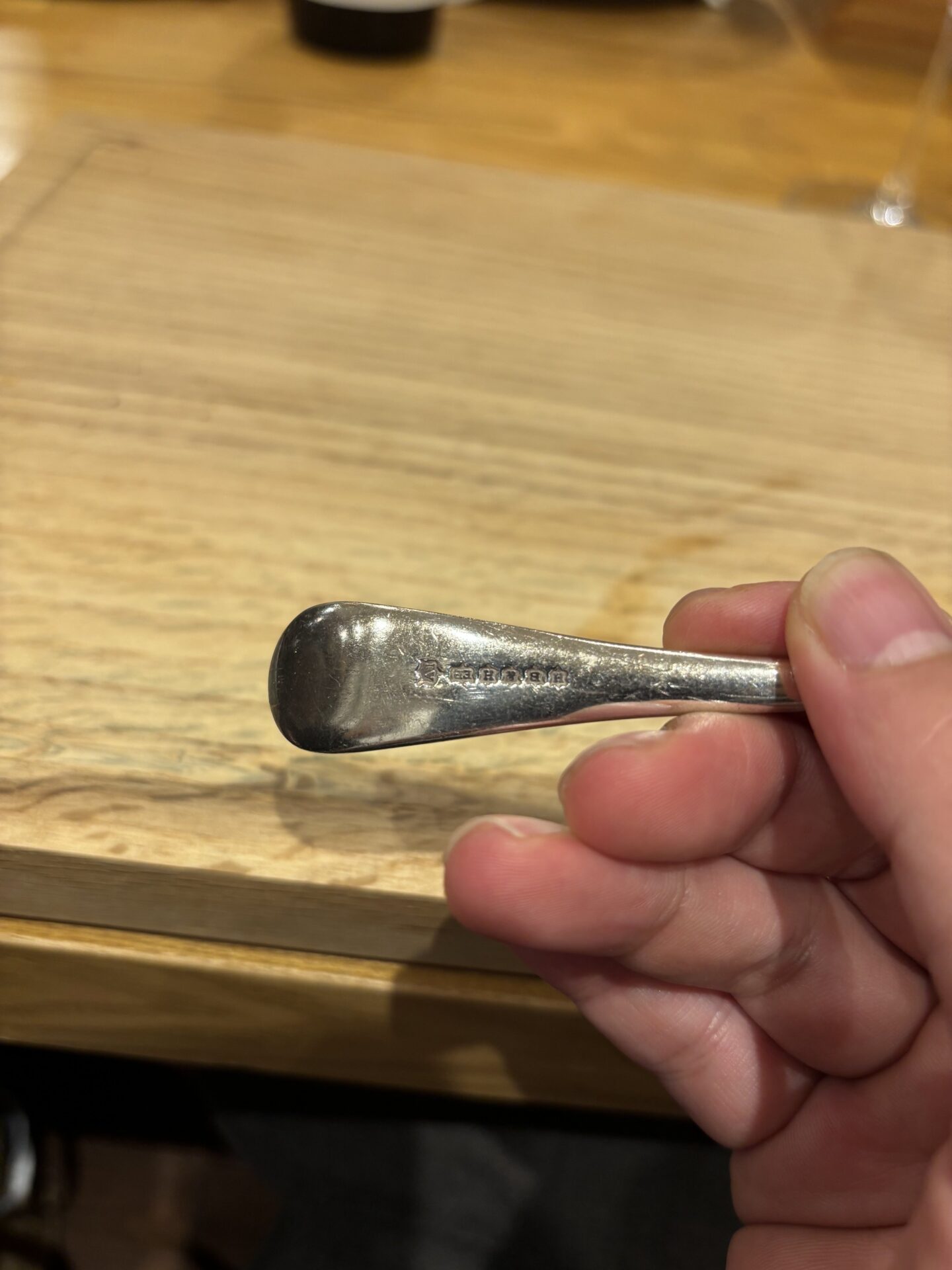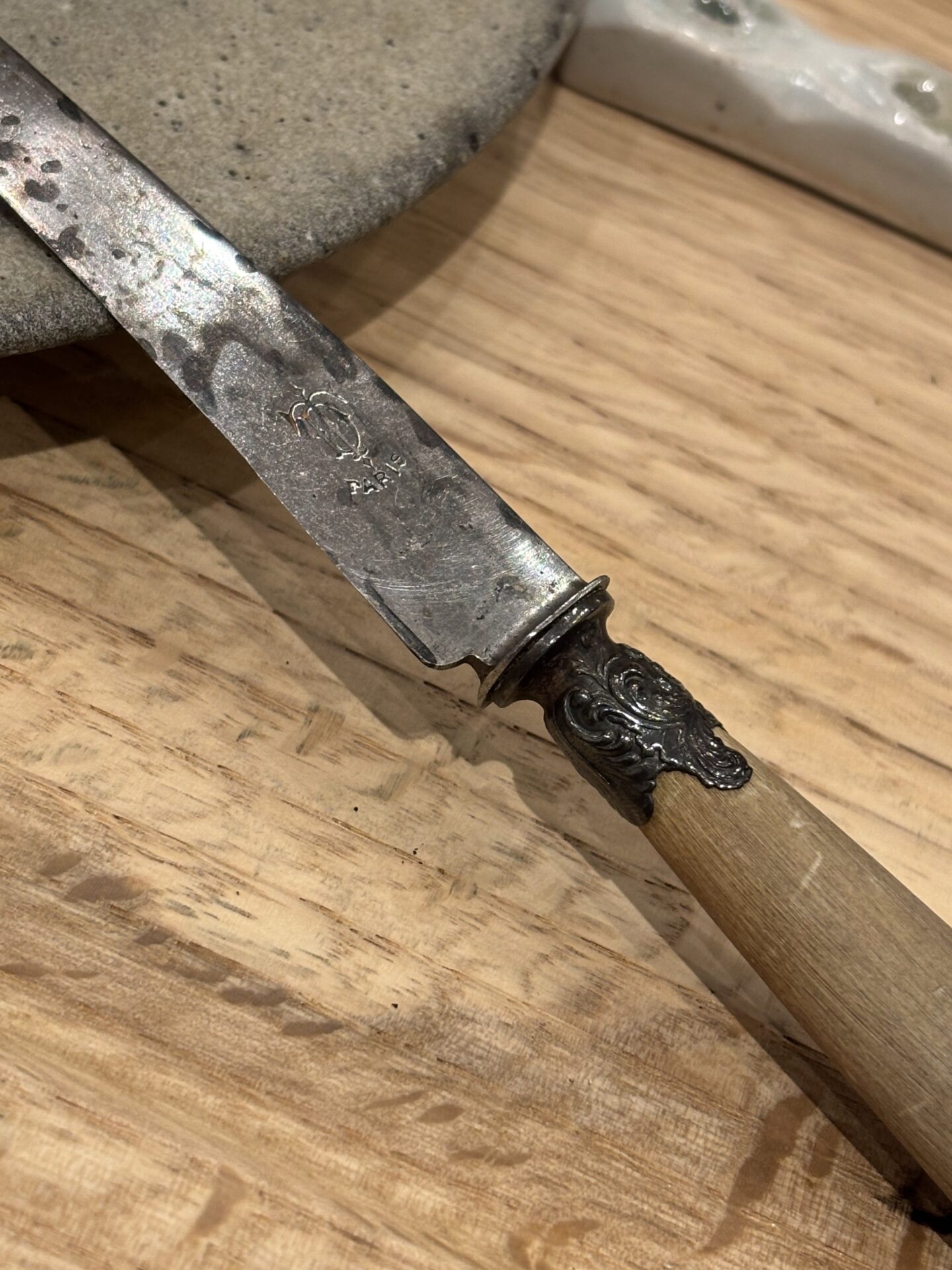 いかにも古そうな食器にPARISのロゴが付いたナイフと、