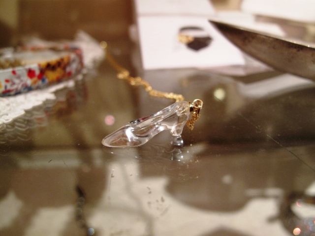 シンデレラの靴モチーフをピアスとネックレスに加工しました。