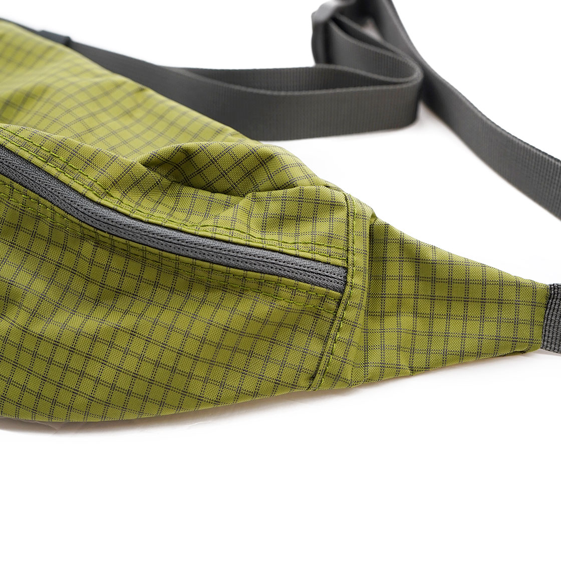 こちらの「UltraGrid™」は210dのリサイクルナイロンをベースに織り上げたリップストップ素材。並外れた引張・引裂強度、耐摩耗性(10万回以上)を誇り、撥水性(C0撥水)/防水性を備えております。ファスナーにはYKKの撥水ファスナーを使用。メインポケットの中には、鍵などの紛失を防ぐためのコードが付いています。体に当たる側は柔らかいメッシュ生地。こちらにもファスナー付きポケットが付いています。