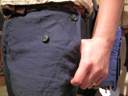 やっぱりオネットのパンツは、こんなシワシワの麻の素材を使っているのに、