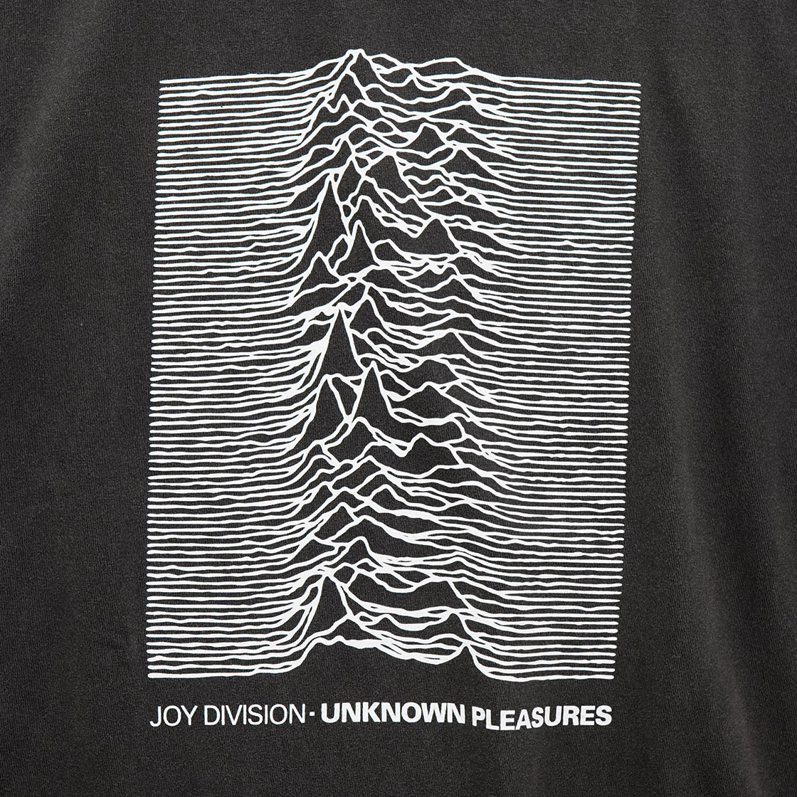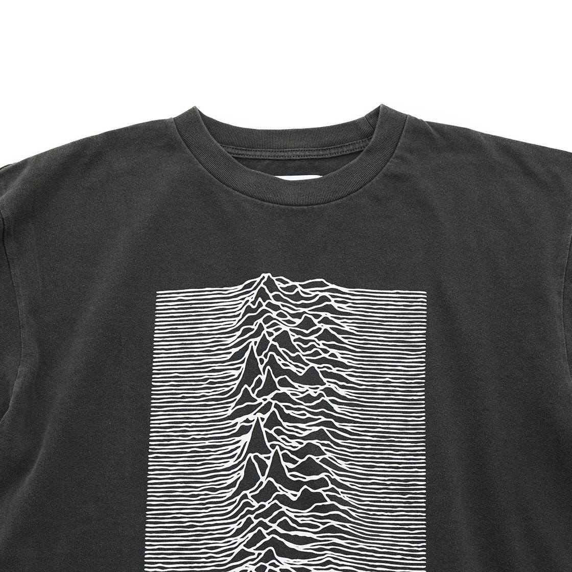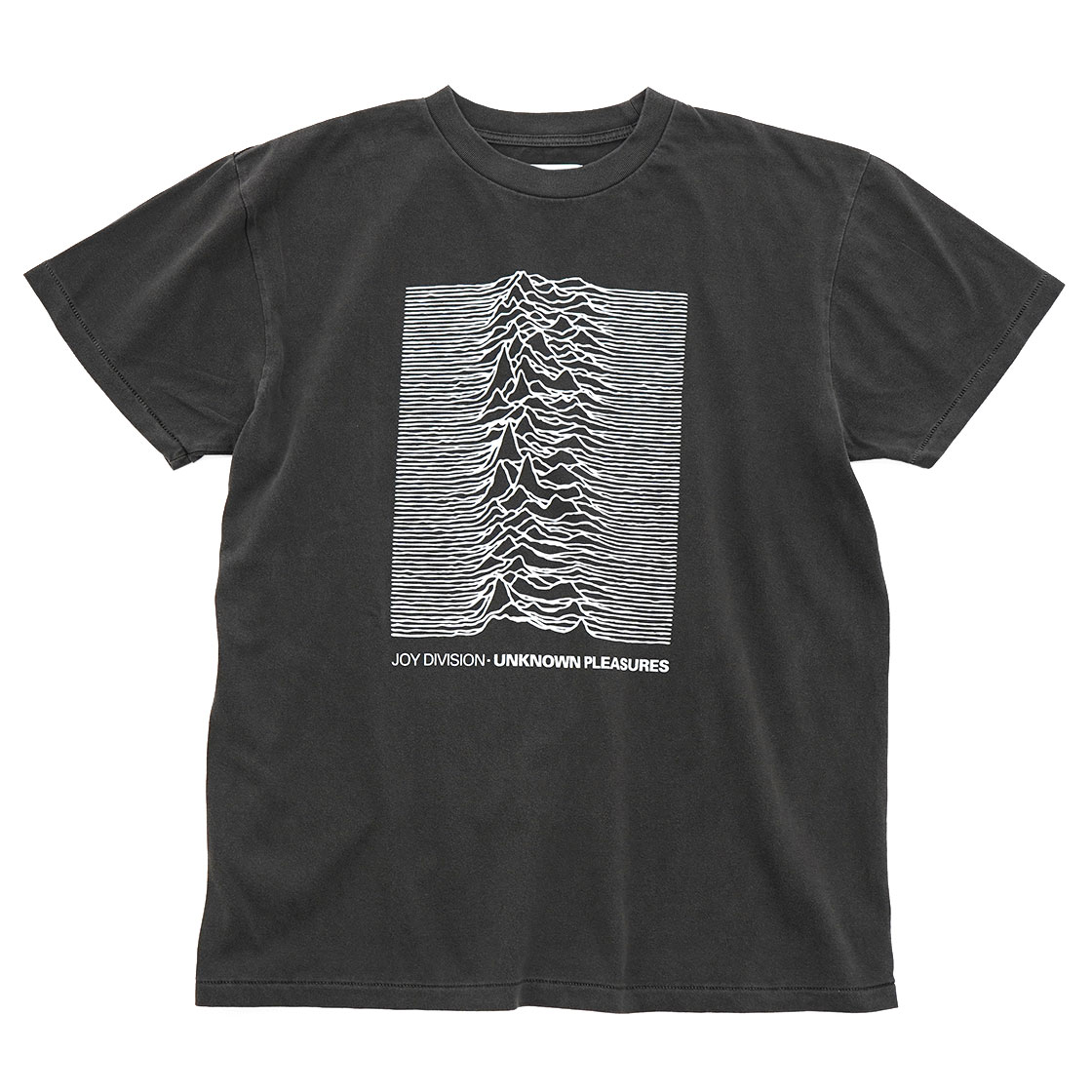 ポストパンクバンド、ジョイディヴィジョンが1979年にリリースしたファーストアルバム「Unknown Pleasures(アンノウン・プレジャーズ)」のグラフィックをプリントしたTシャツです。この象徴的なデザインは、1967年に発見されたパルサー(信号、電波のようなもの)の波形。