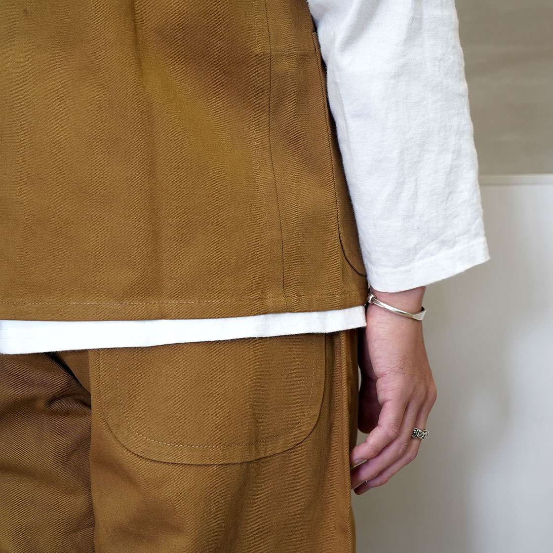 ご覧いただくと分かるかと思いますが、その日お客様が着ていた服と合わせても、不思議なことに全く違和感がありません。OLD TOWNには独特のスタイルがあるのですが、目立たず揺らがず、生活に寄り添っている服なのだと感じました。