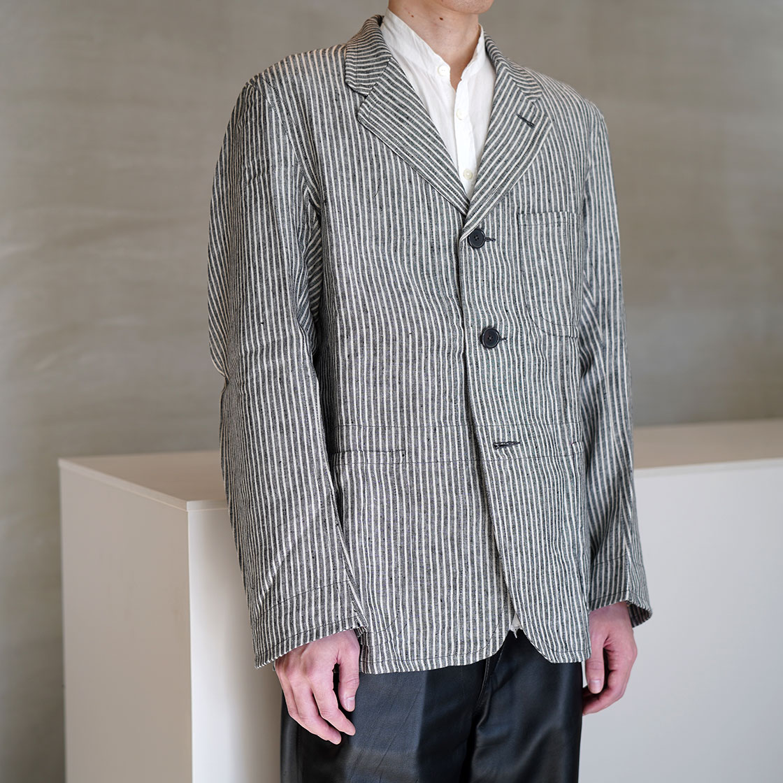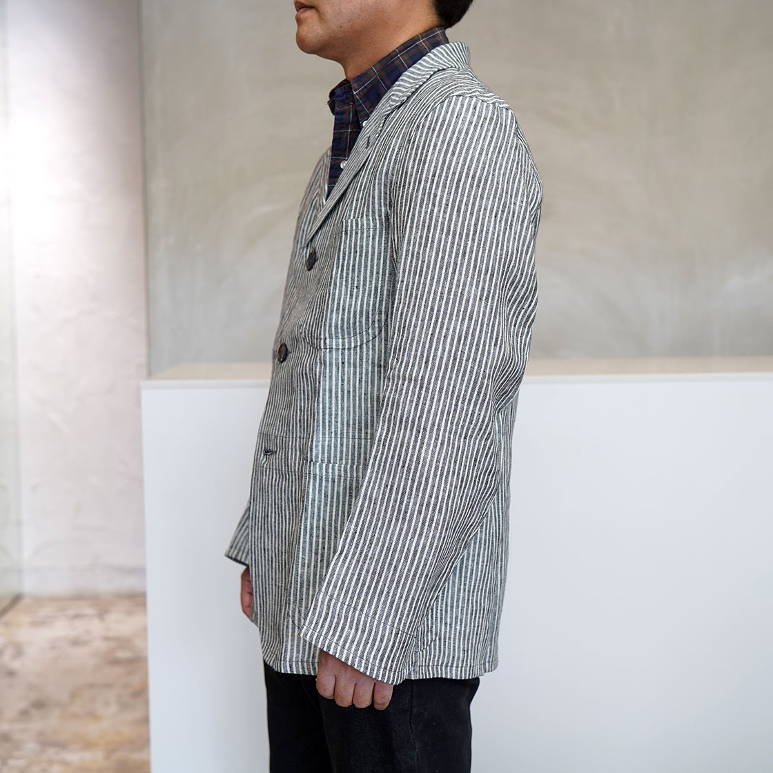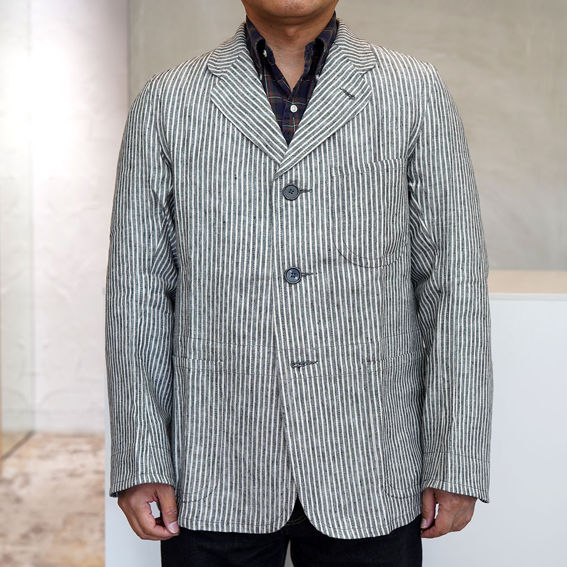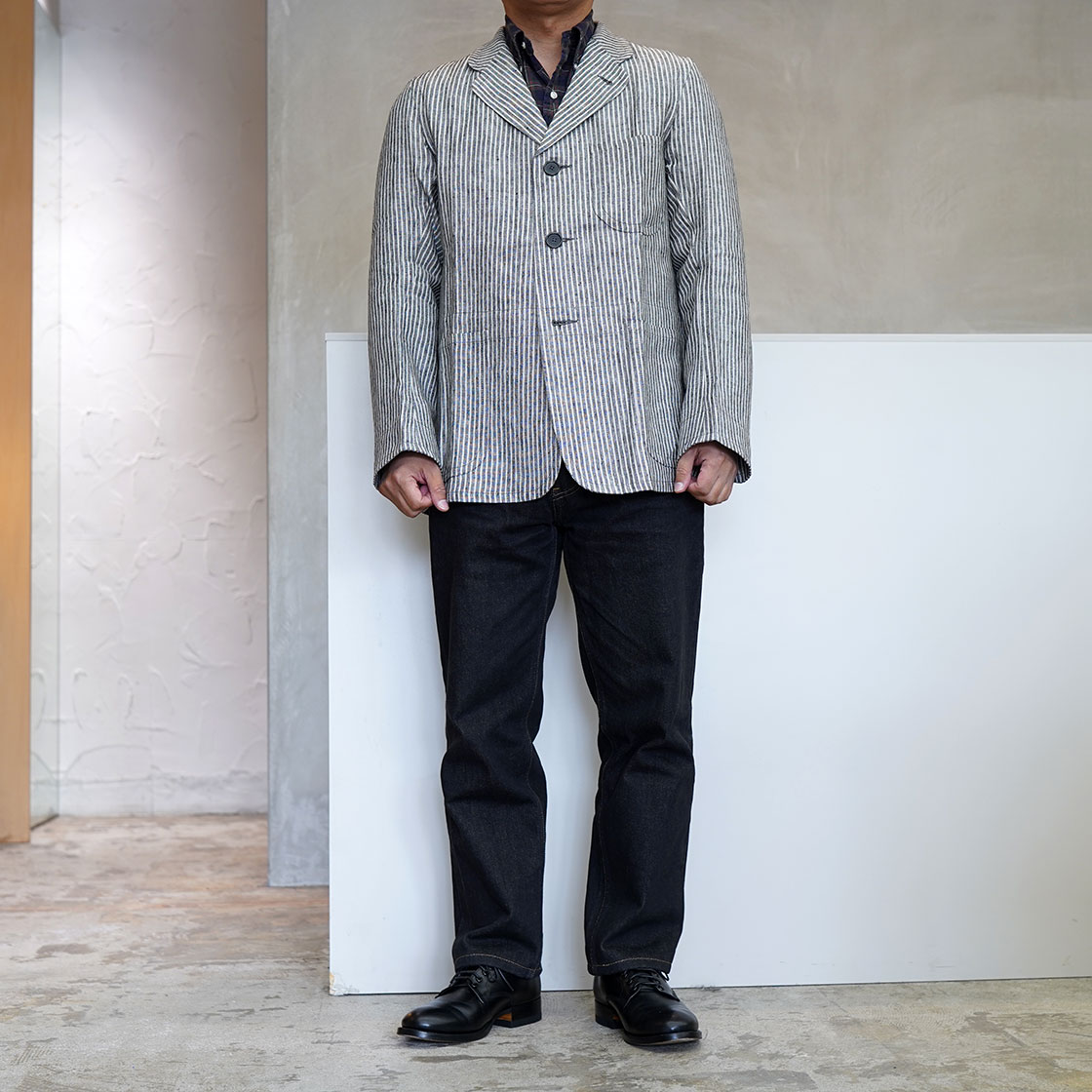 こちらはSTANLEYというモデル。OLD TOWNのアイテムの中でも、このジャケットが一番合わせやすいシルエット。Boroughをベースに、少しだけ身幅と着丈を詰めています。当店ですと、Yarmoや1ST PAT-RNなどのワークジャケットで馴染みのある形。