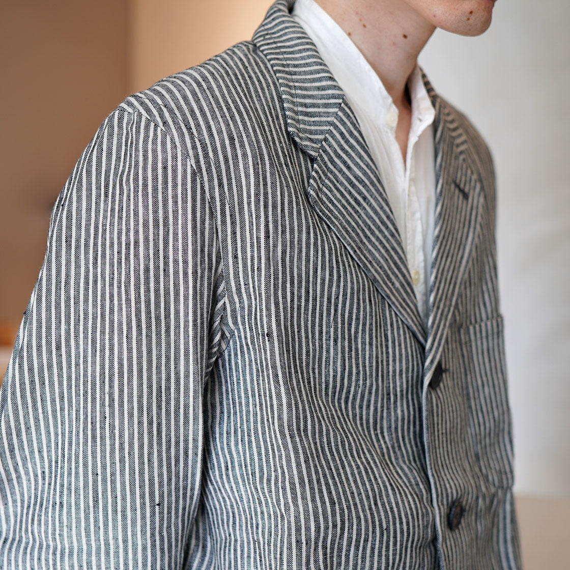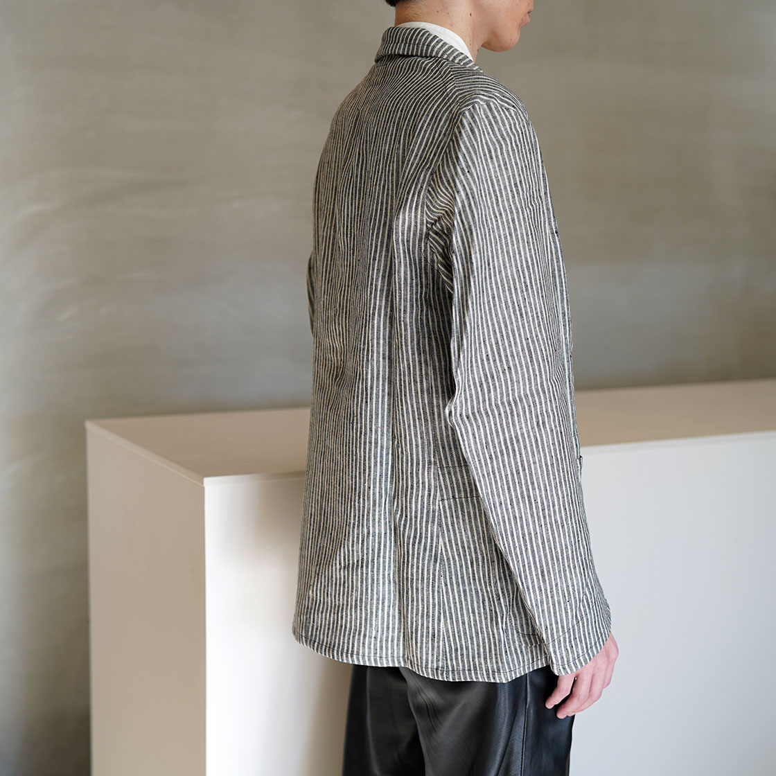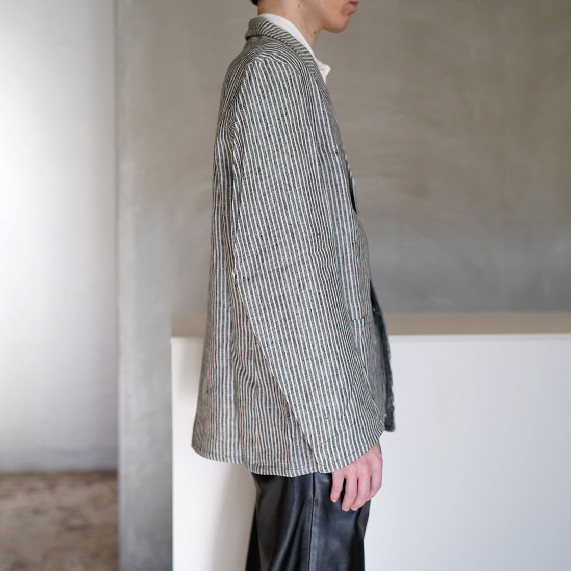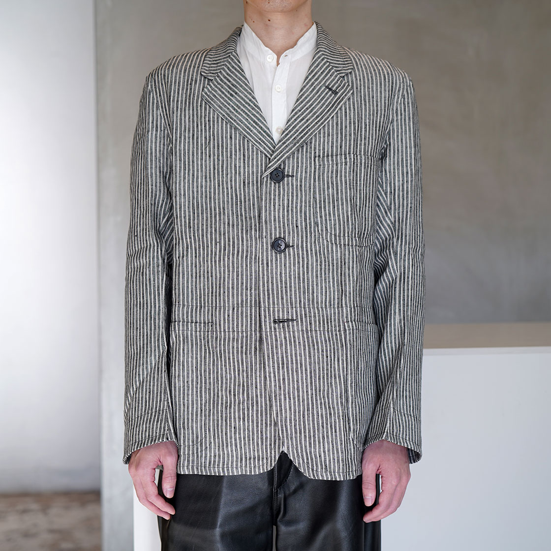 こちらはSTANLEYというモデル。OLD TOWNのアイテムの中でも、このジャケットが一番合わせやすいシルエット。Boroughをベースに、少しだけ身幅と着丈を詰めています。当店ですと、Yarmoや1ST PAT-RNなどのワークジャケットで馴染みのある形。
