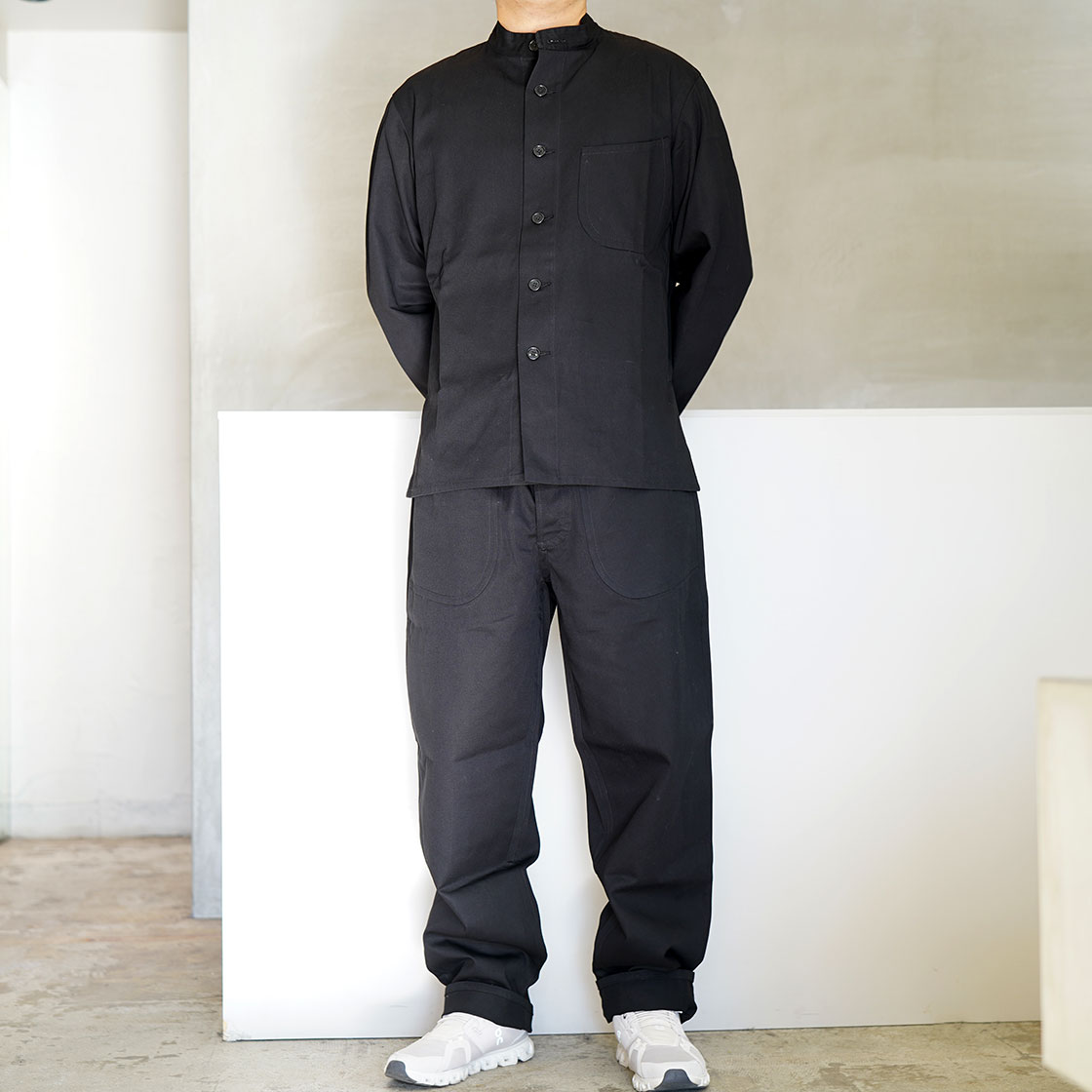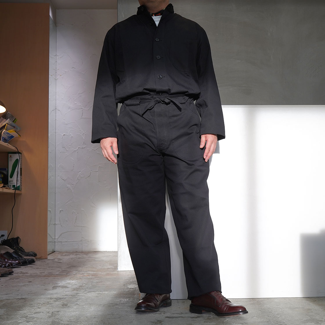 UnityJacket。スタンドカラーのシャツジャケット。個人的には、日本のあのジャケットに似てて好き。しかしこのジャケットのUnity(=結束)という名前、何とUnityしてしまうのかと言いますと?同じくUNITY TROUSERSというアイテムがあり、先ほどのUnity Shirtsとセットアップできると、ツナギにしか見えない!?という非常に興味深い服なんです!これもね、ツナギに寄せるならデニムコットンでオーダーするし、ウールやリネンやオーダーすると、また全然違った雰囲気になるので面白いんですよ。何が面白いって、OLD TOWNって古臭い伝統的なイギリス服だけじゃなかったんだ~ってことが分かるわけですね!