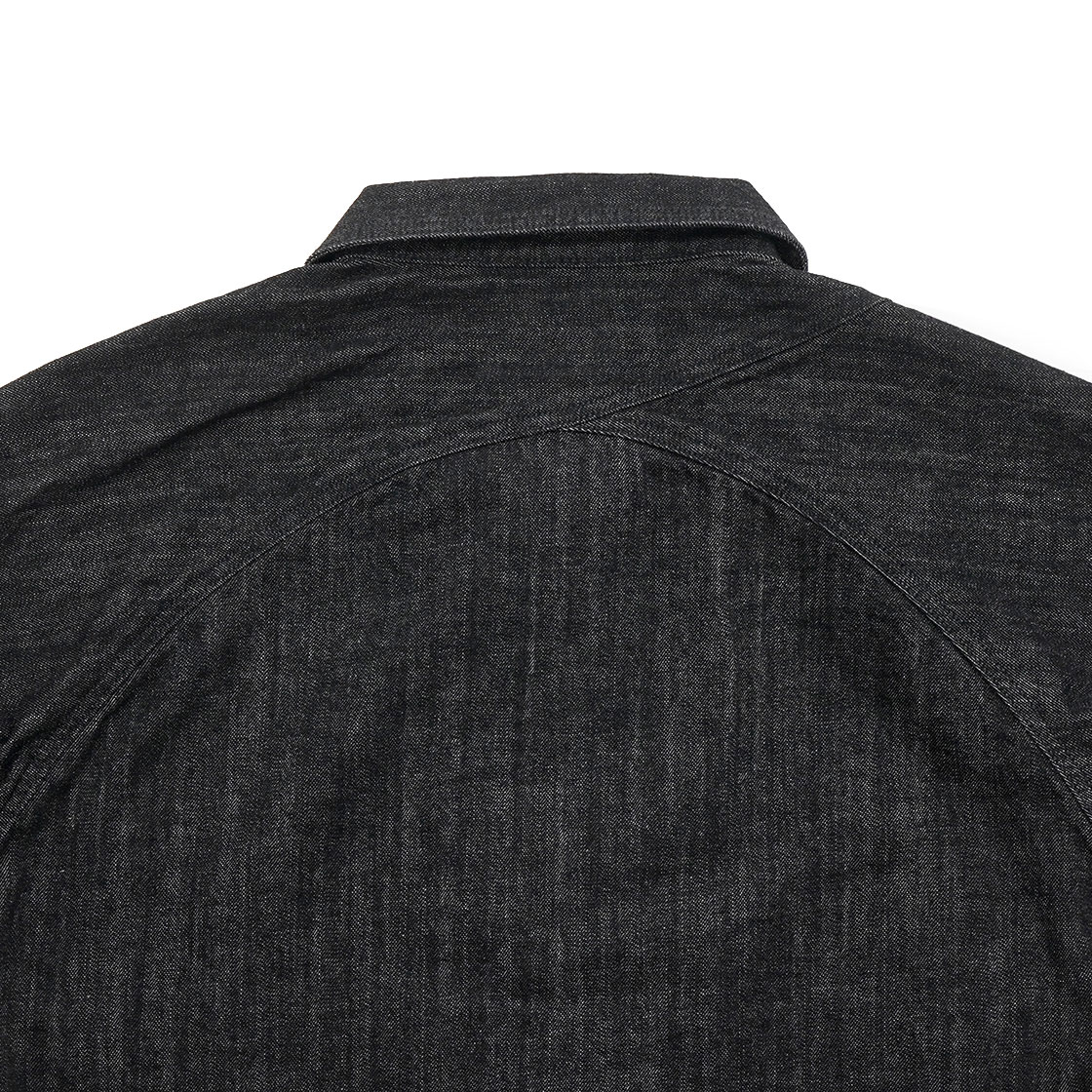 袖付けは前身頃がセットインスリーブ+後身頃がラグランスリーブで、スプリットラグランと呼ばれるタイプ。またヨーク部分の合わせは、Leeのカバーオールの袖口のデザインを応用したもの。袖口は筒袖にカフを取り付けた、ヤンクカフのようなデザインです。