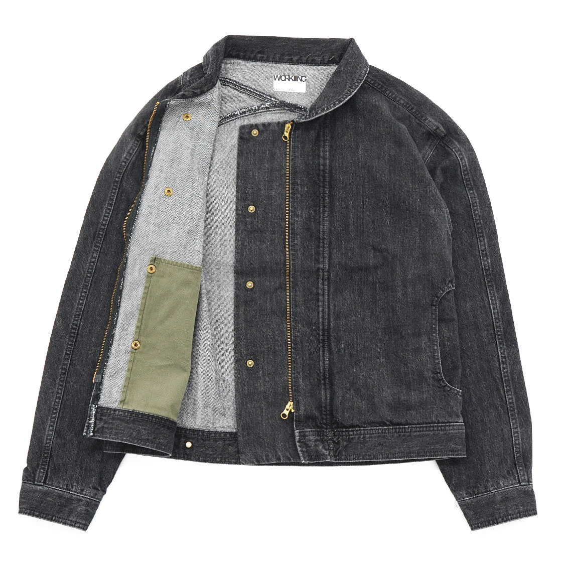 様々なミリタリーウェアの要素を加えつつ、独自に進化したデニムブルゾン。特徴的なショールカラーは、1900年代初頭に登場したUS