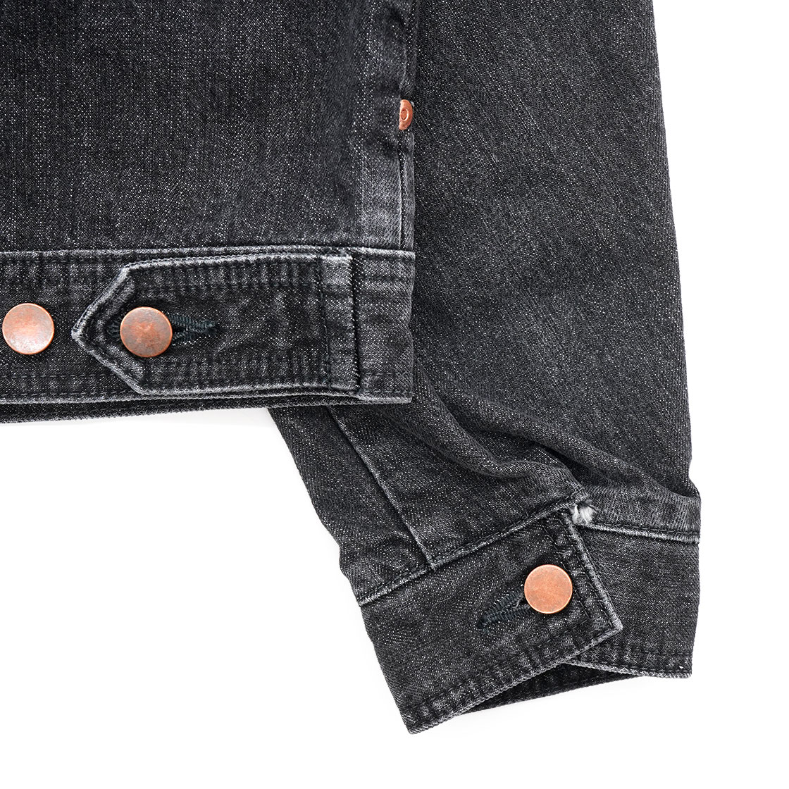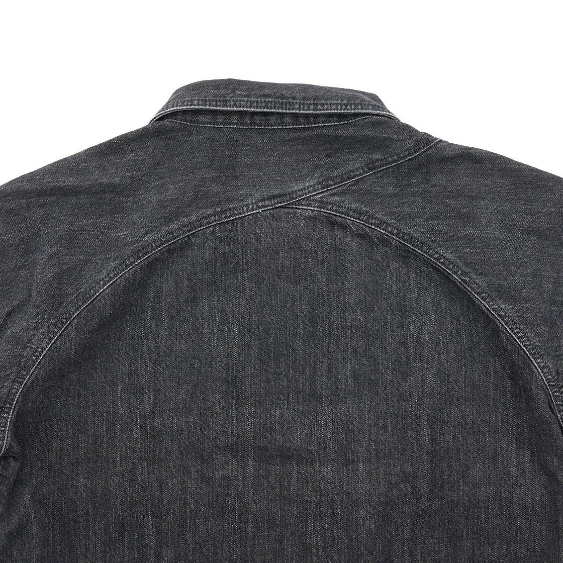 袖付けは前身頃がセットインスリーブ+後身頃がラグランスリーブで、スプリットラグランと呼ばれるタイプ。またヨーク部分の合わせは、Leeのカバーオールの袖口のデザインを応用したもの。袖口は筒袖にカフを取り付けた、ヤンクカフのようなデザインです。