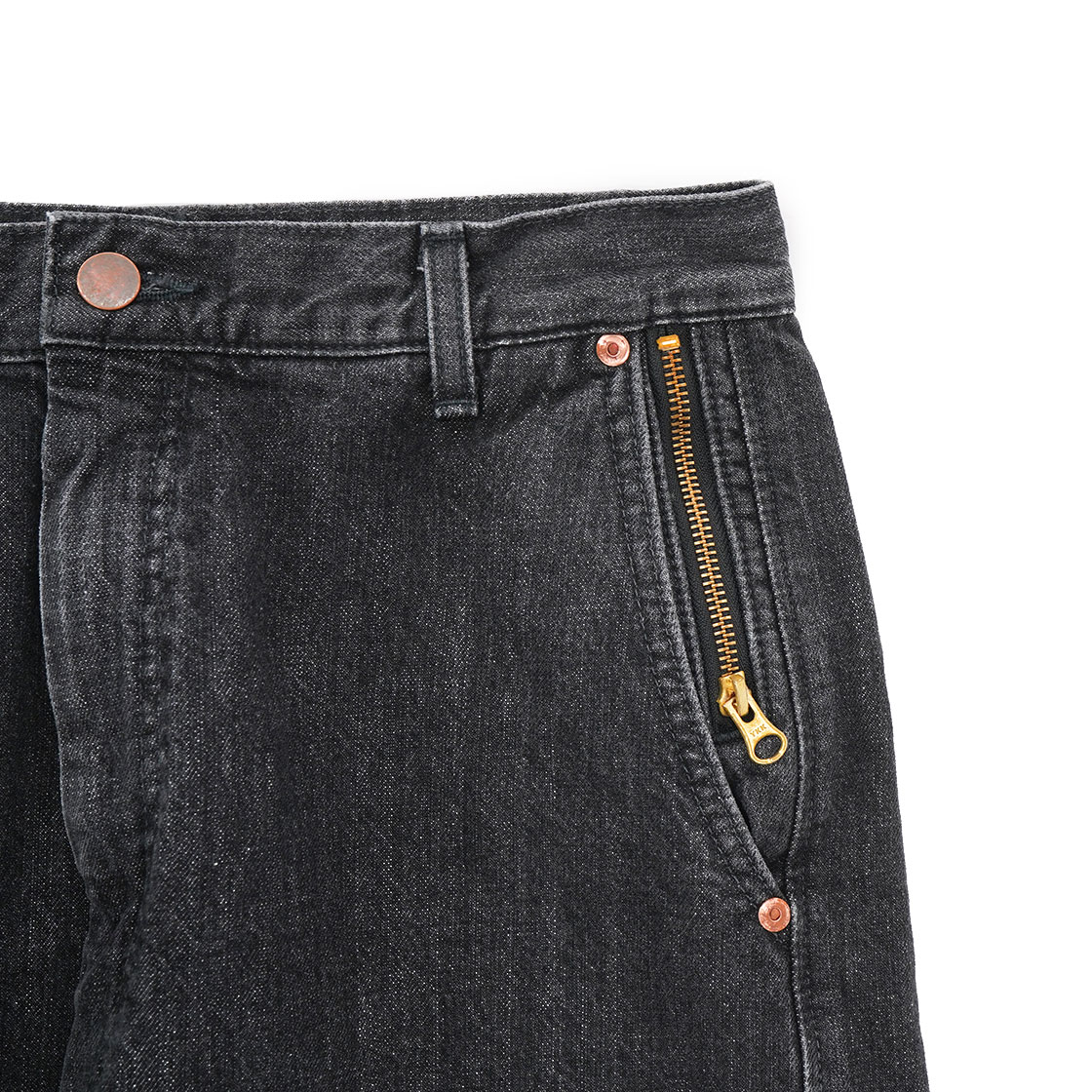 パッと見はシンプルなブラックジーンズながら、歪んだ(skew)ディテールの数々。左右のポケットに付属するフラップ付きポケットとファスナーポケットは、容量も少なく何を入れていいか分からないくらい。