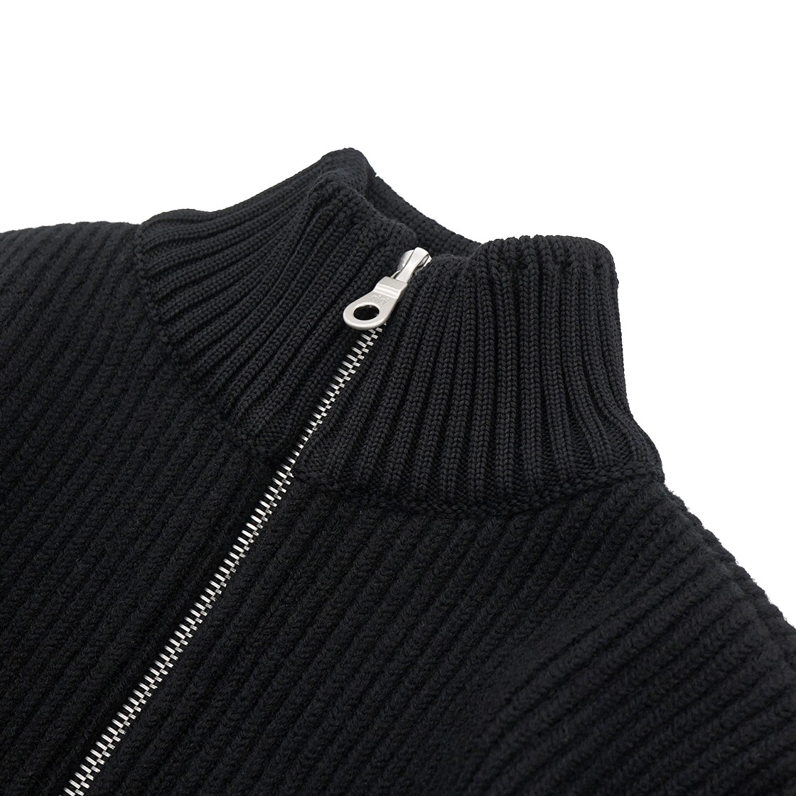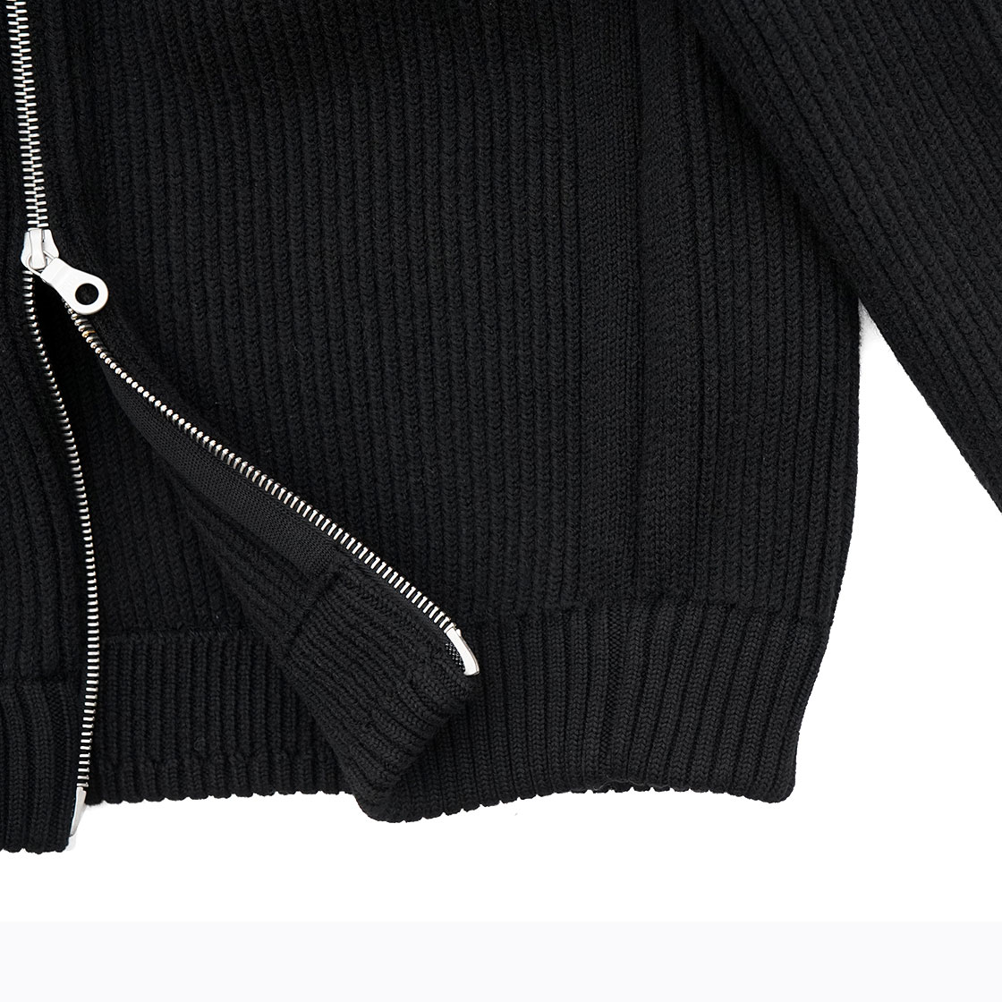 大ぶりのririジップ、さらにダブルジップを備えたS.N.S.HERNINGフルジップアップニットは、5ゲージの極厚ニットにフェルト加工を施し柔らかな肌触り。度詰めで編まれているので、耐久性も抜群です。