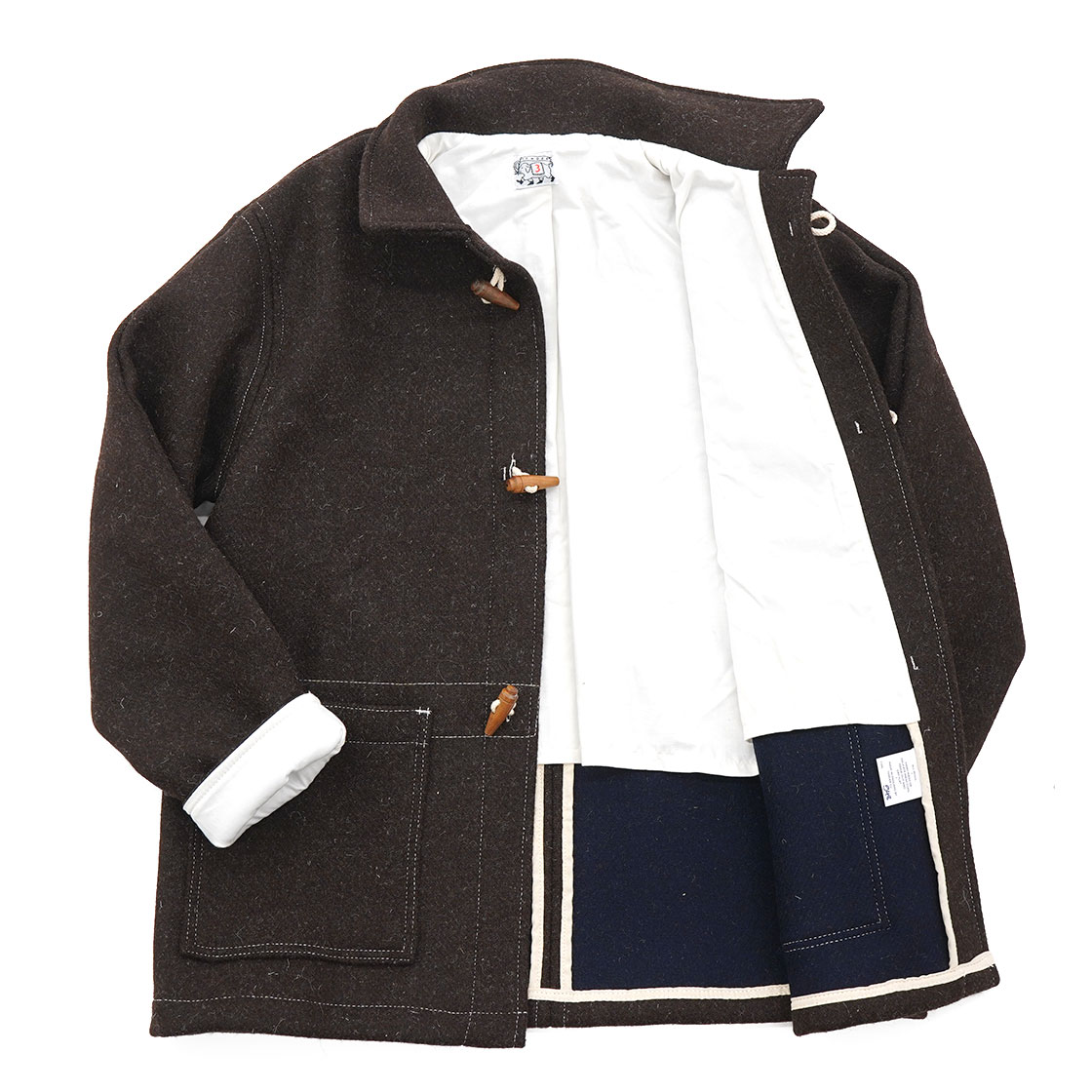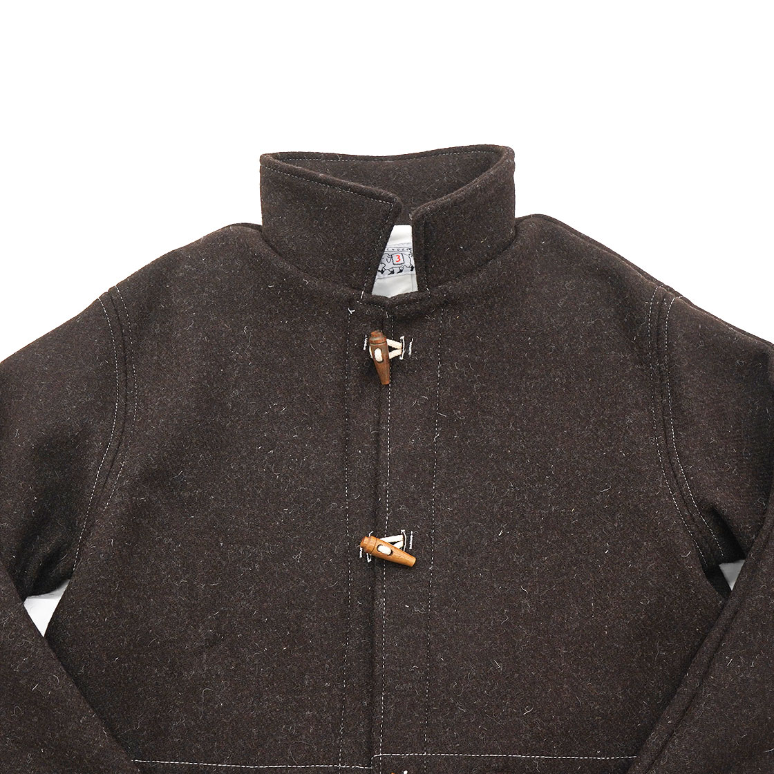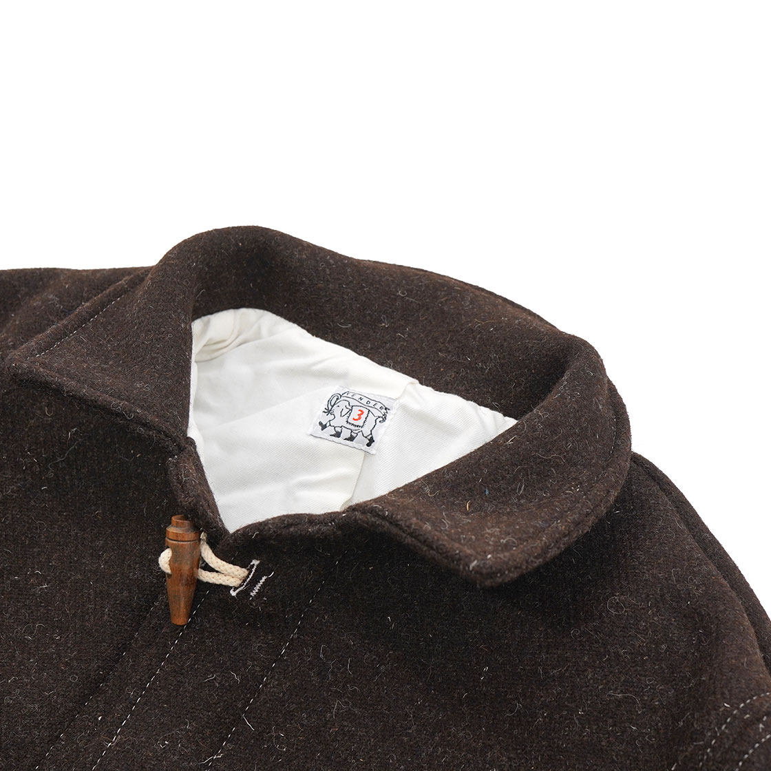 ヴィンテージウェアの中でも有名な、ロイヤルネイビー(イギリス海軍)のダッフルコートからインスピレーションを元にしています。TENDER Co.にしては珍しく、レアで有名なモチーフです。