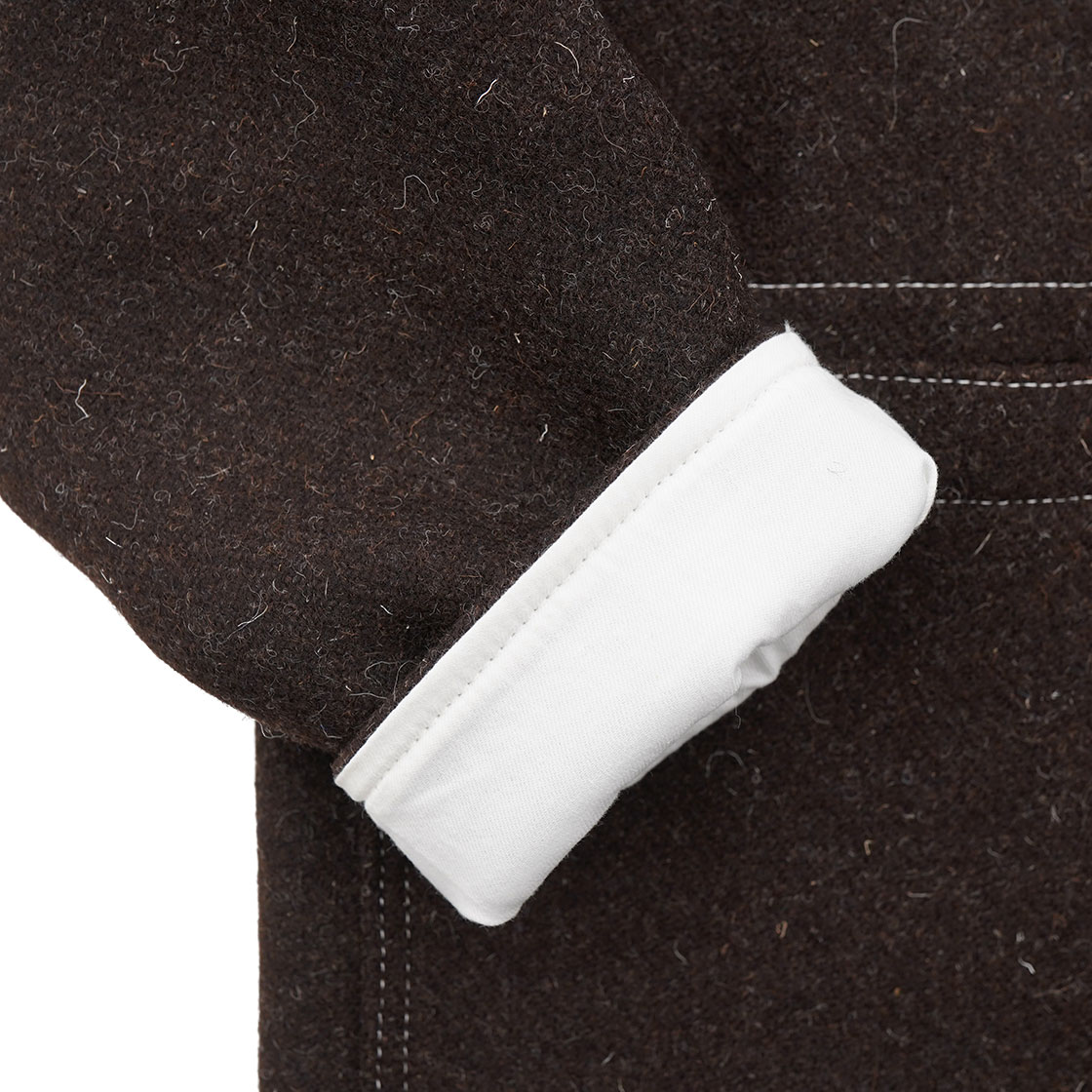 Co.らしくもあります。裏地は袖裏と背裏にコットンドリルを当てているので、脱ぎ着もスムーズです。ポケットの上部は、裏からヘリンボーンテープで補強している、イギリスのワークウェアらしい作り。