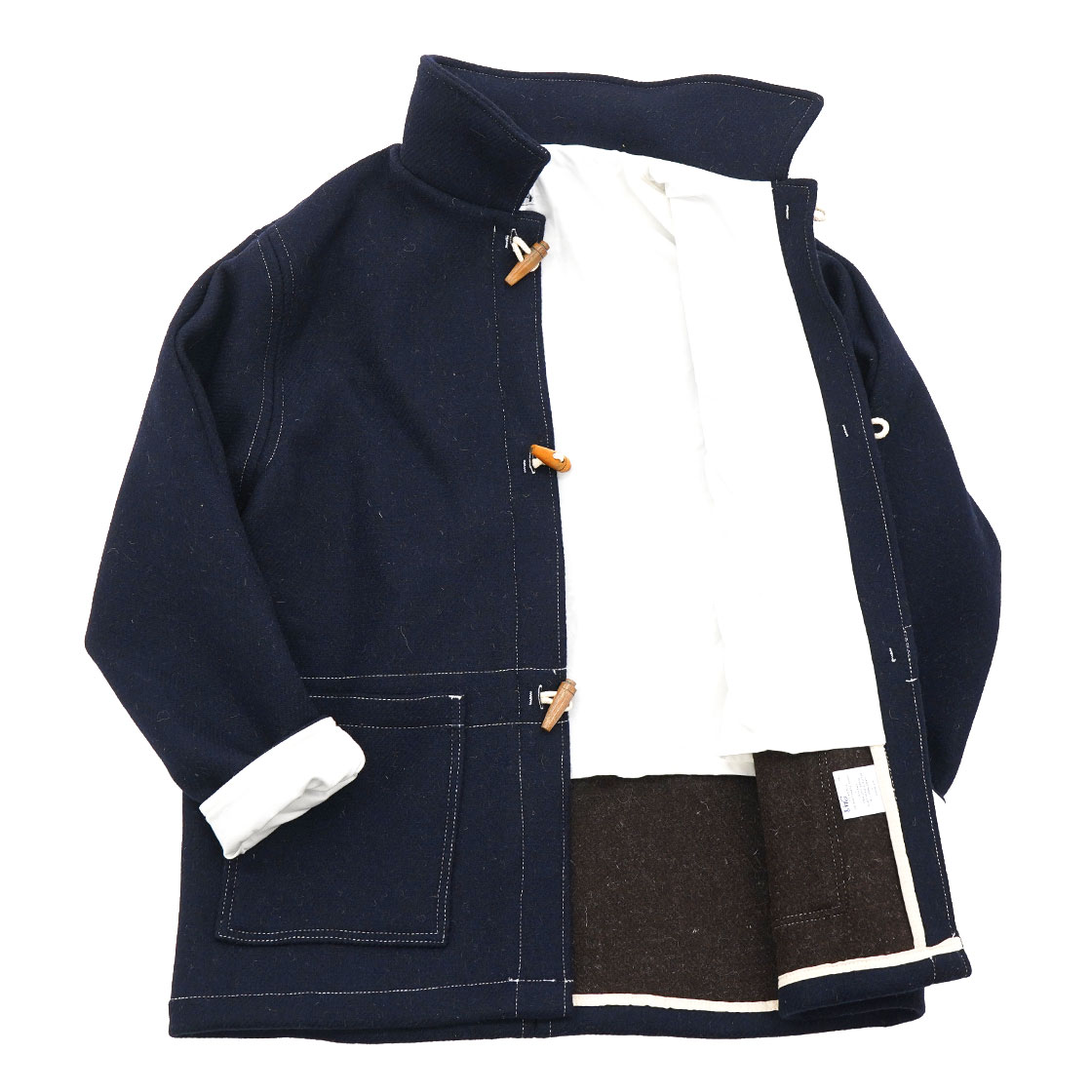 ヴィンテージウェアの中でも有名な、ロイヤルネイビー(イギリス海軍)のダッフルコートからインスピレーションを元にしています。TENDER Co.にしては珍しく、レアで有名なモチーフです。