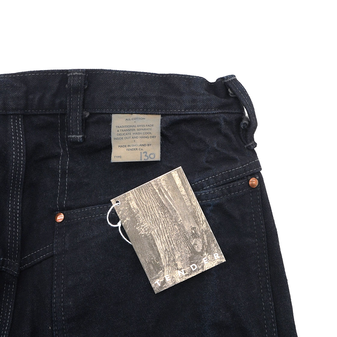 また気になるのは、ボタンフライ部分のボタンの少なさ。トップボタン以外には、2つしかついてないんです。実はコレ、British Railways(イギリス国鉄)時代の制服のディテールを用いたそうです。「テンダー」=機関車なので1900年代初頭のディテールを取り入れたデザインとなっています。さらに、ボタンフライの下にキラリと光る通称「股リベ」もヴィンテージファンとしては嬉しい限り。