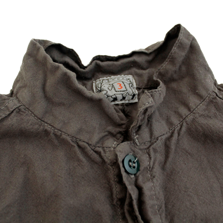 同ブランド定番であるTailShirtの上に羽織ることを想定し、シャツが見えるよう裾の部分がアーチ状にカッティングされています。色はLogwood。