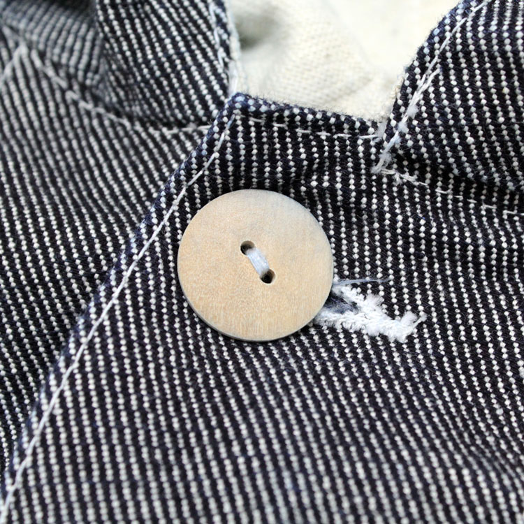 大き目のボタンはオリーブのボタン。使い込むほどに飴色に変化していく様は、まるでレザーのようです。