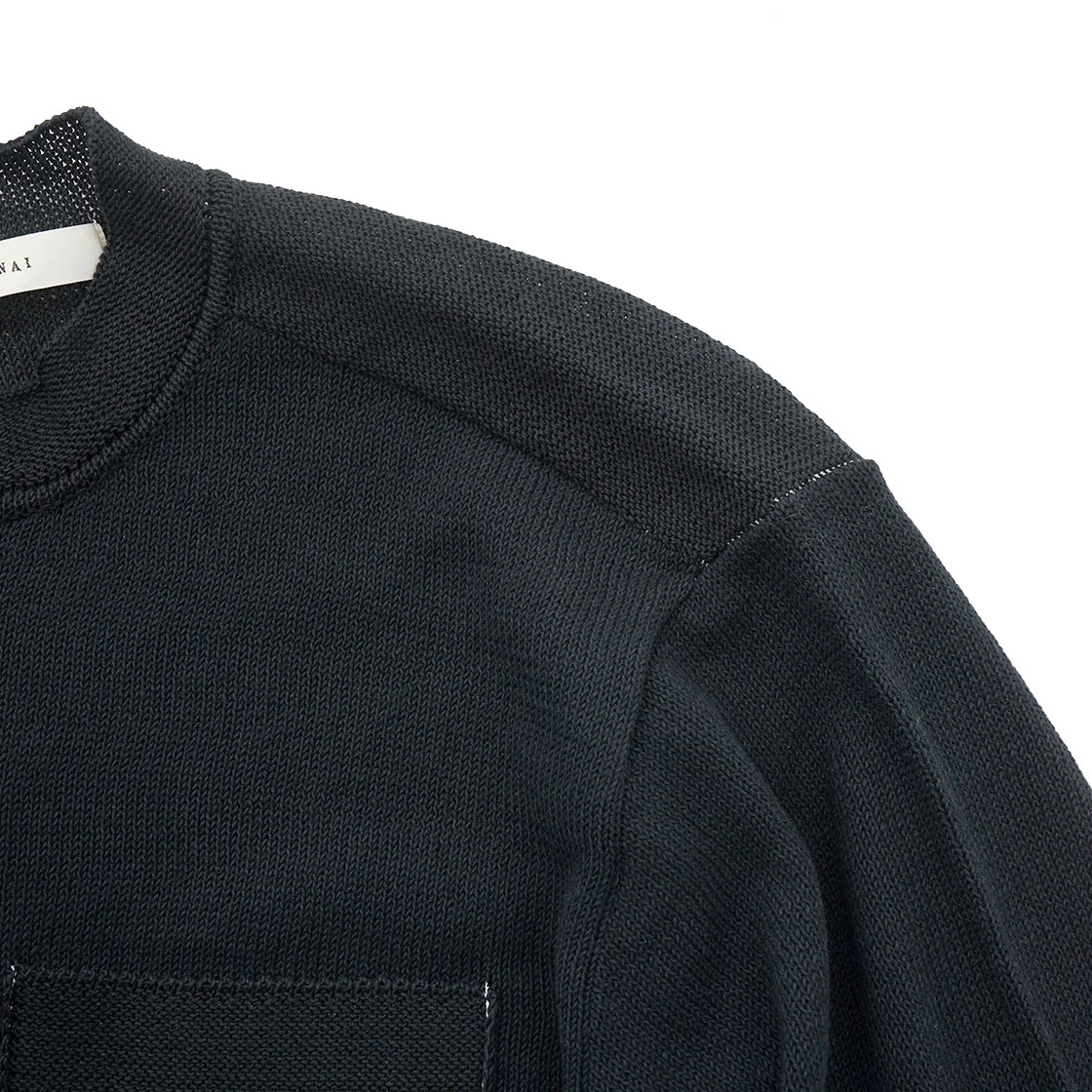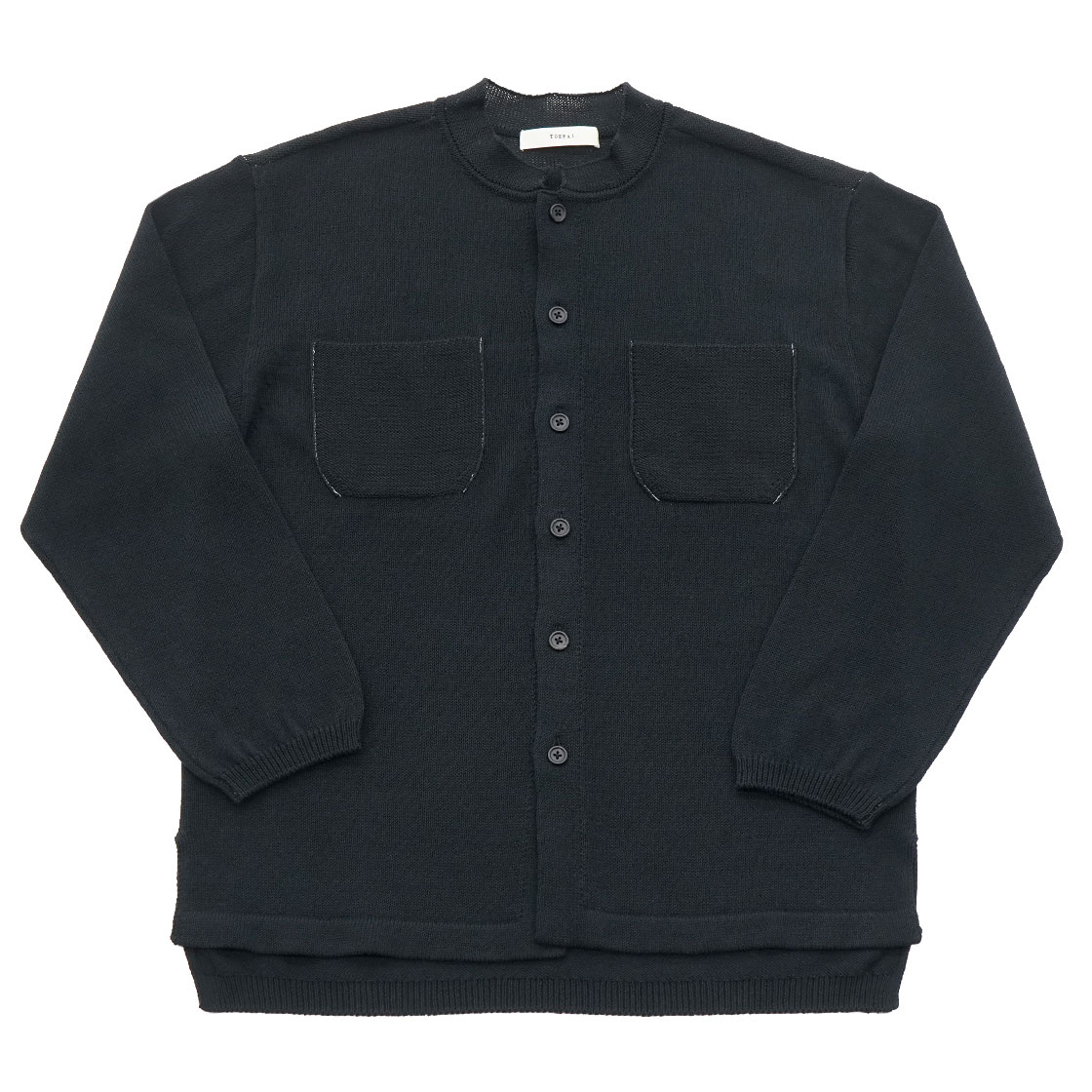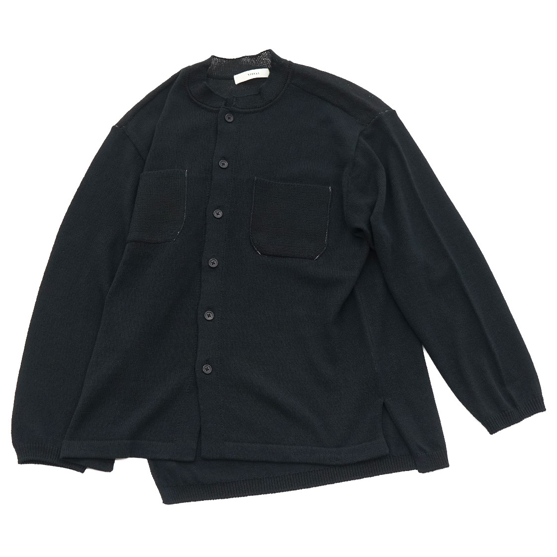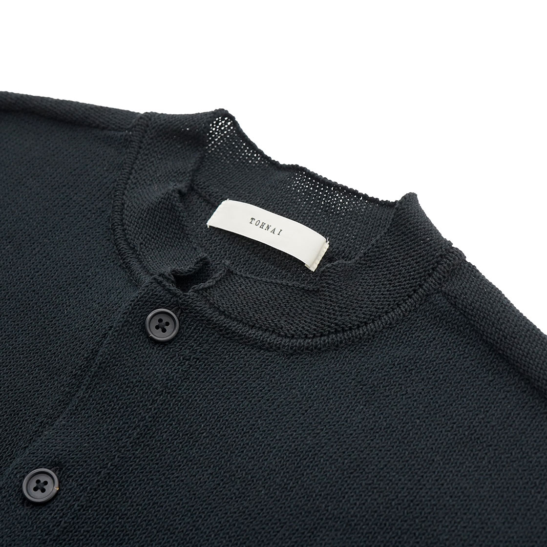 TOHNAI|BAND COLLAR CARDIGAN|ROUGH COTTON LINEN / BLACK