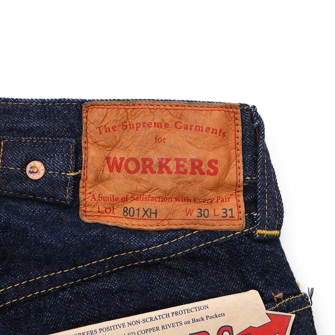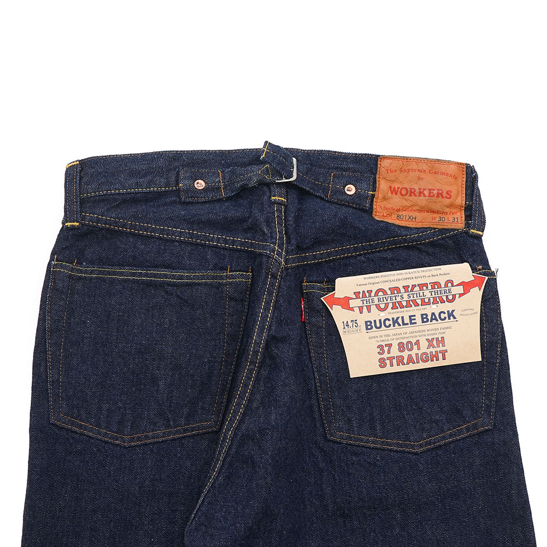 WORKERS|37 801XH, Buckle Back|14.7 oz, Indigo Raw Denim