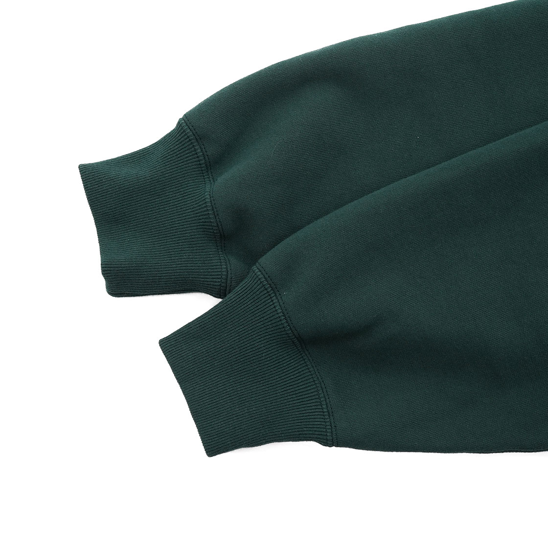 生地は厚く重く、スーパーヘヴィーと言っていい15オンス。それでも化繊は使ってないので、着心地はしなやかです。またリブも綿100%で編んでいるため、程よいテンションで締まります。